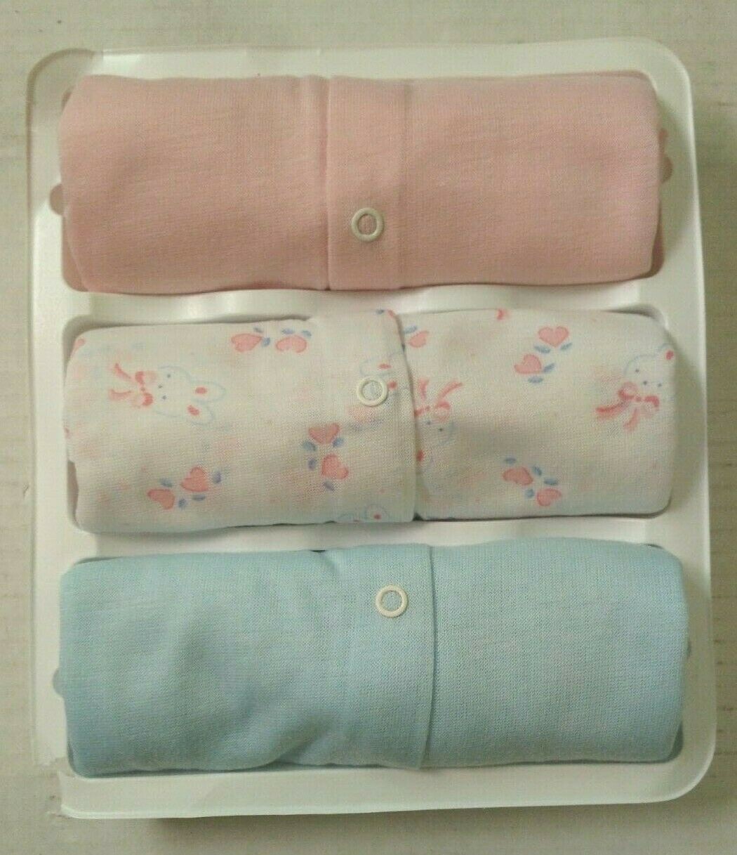 Infant Baby Girl Vintage Curity 3 Pc Soft Light Weight Sleepers Sz Up to11 Lbs