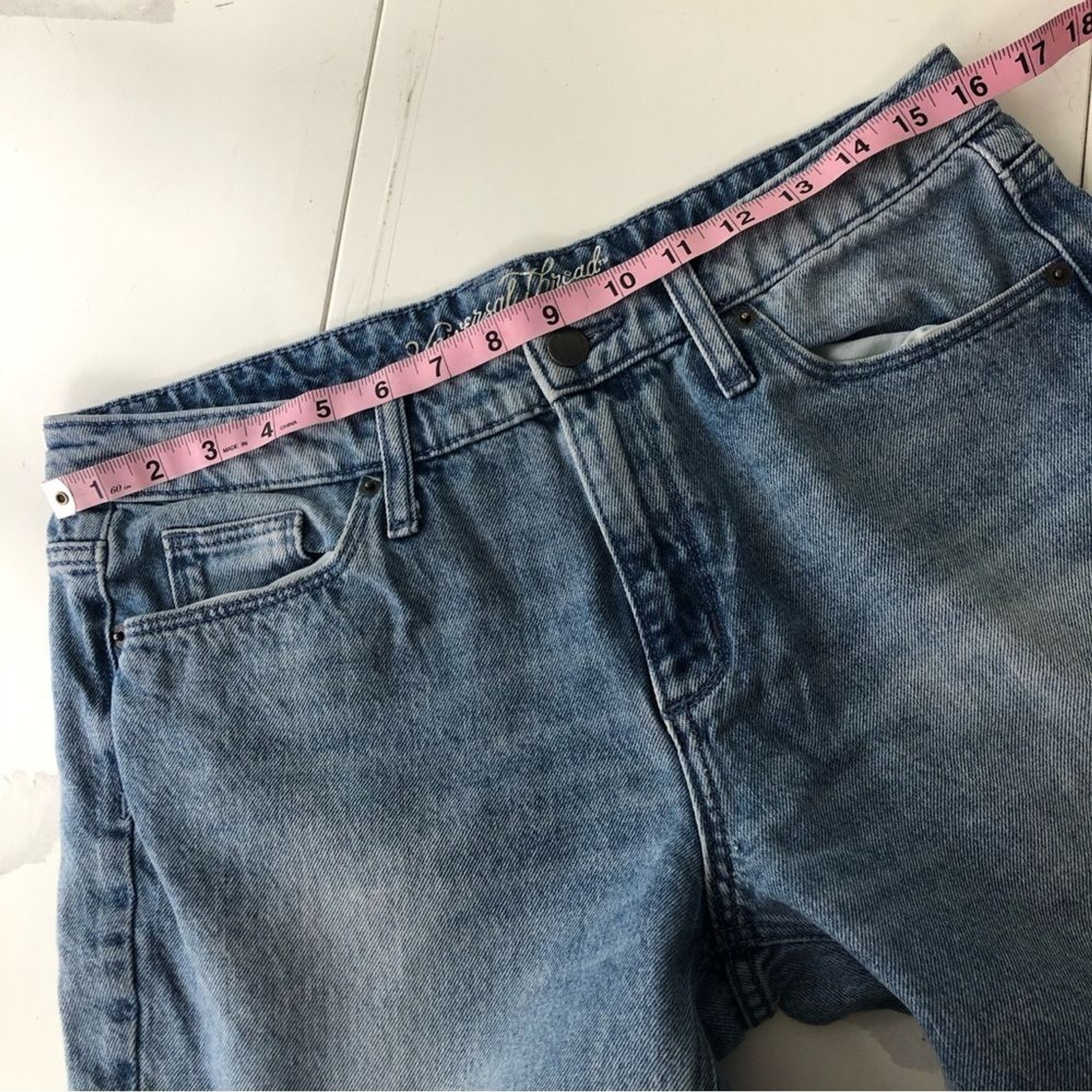 как выглядит UNIVERSAL THREAD Women s Wide Leg Cropped Raw Hem Mid Wash Jeans Cotton фото