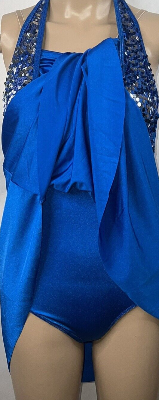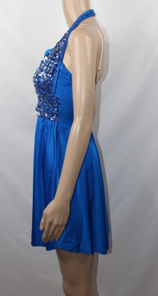 Curtain Call Costumes Blue Dress Sleeveless Sequins Build in Leotard Juniors ASM