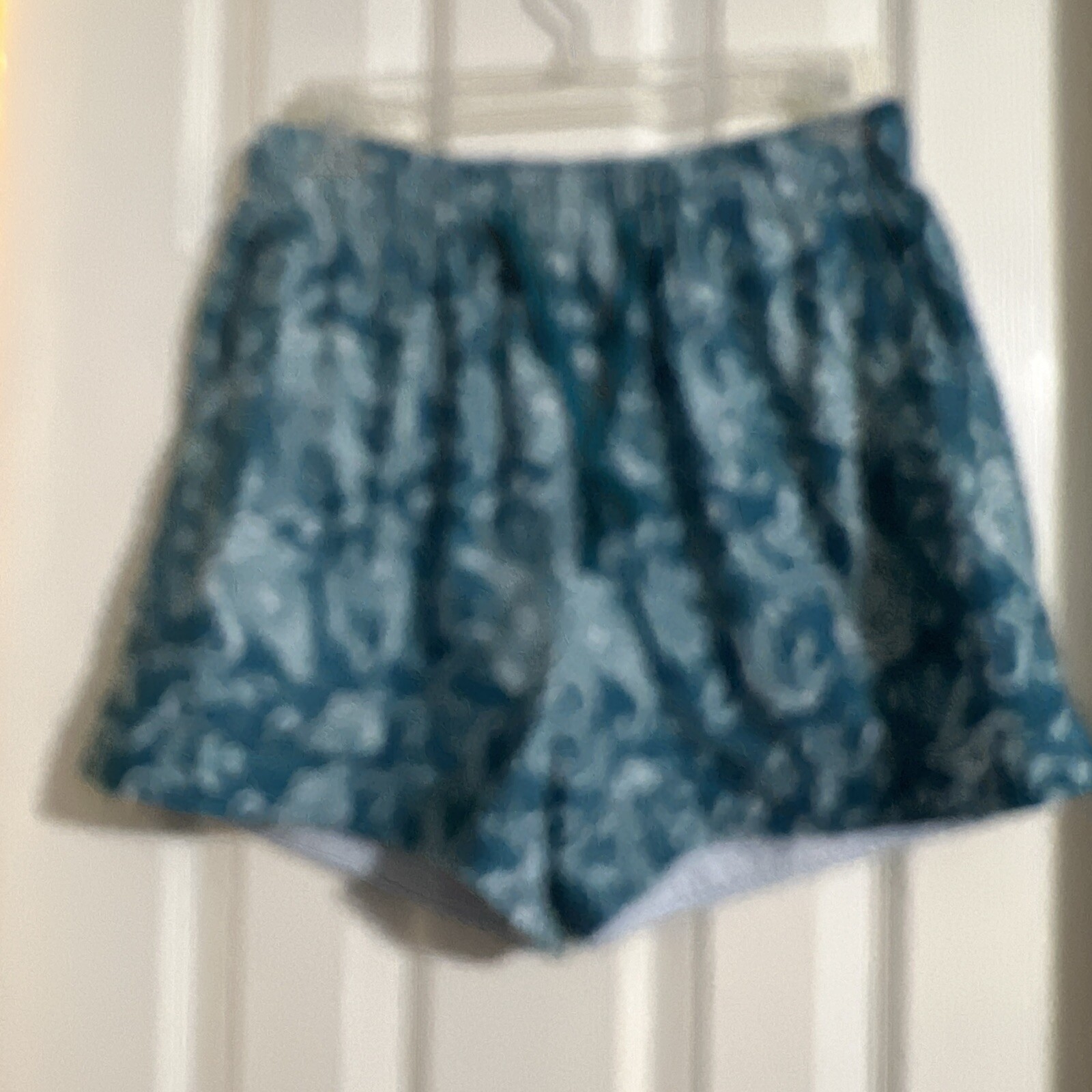 как выглядит Womens Casual Drawstring Shorts, Elastic Waist, Pocketed, Turquoise Paisley фото