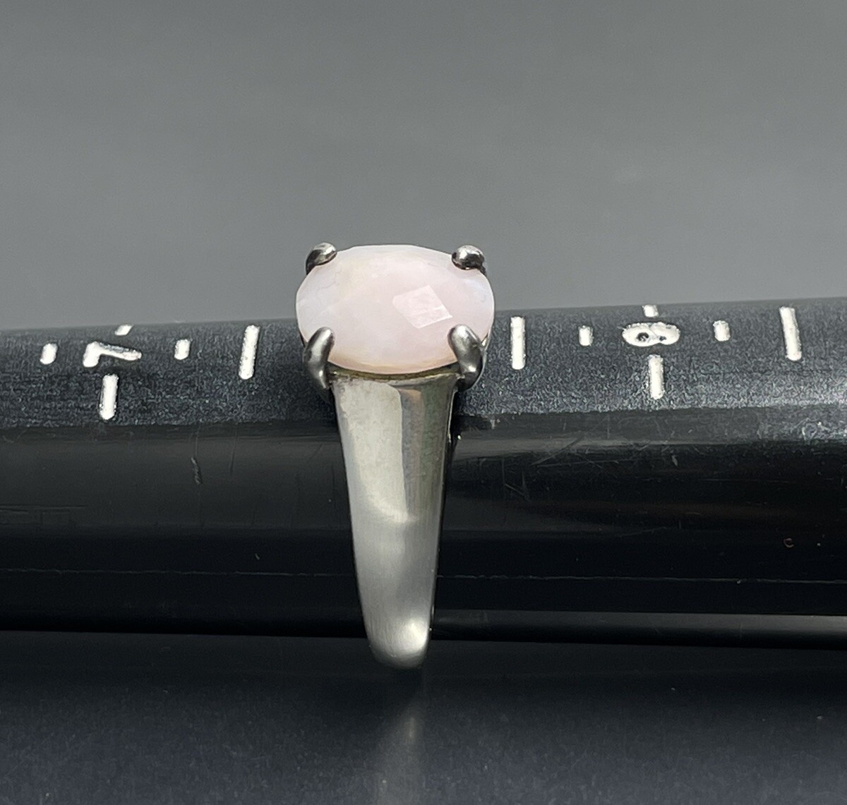 Vtg Sterling Silver 925 Faceted Oval Pink Quartz Gemstone Women s Size 8 Ring