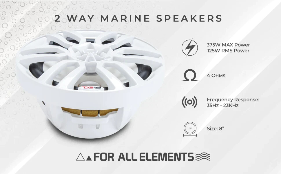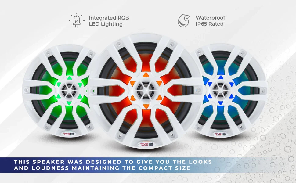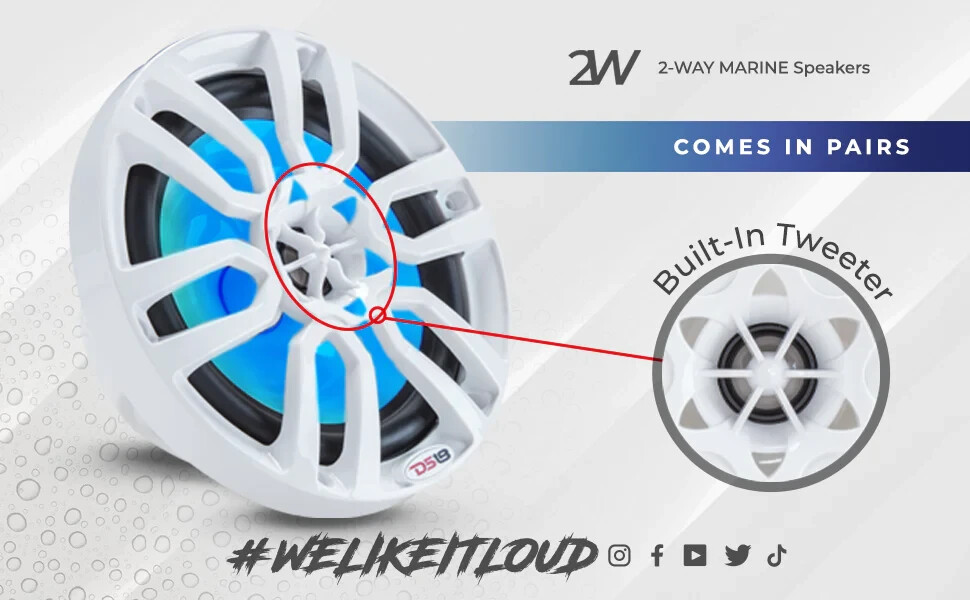 DS18 8 Marine 2-Way Speakers ATV UTV Boat Golf Cart RGB LED Lights White NXL-8