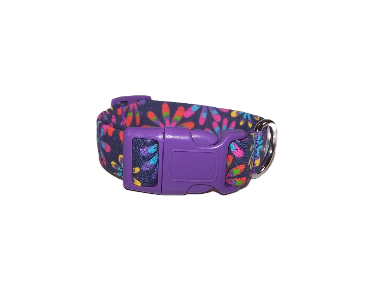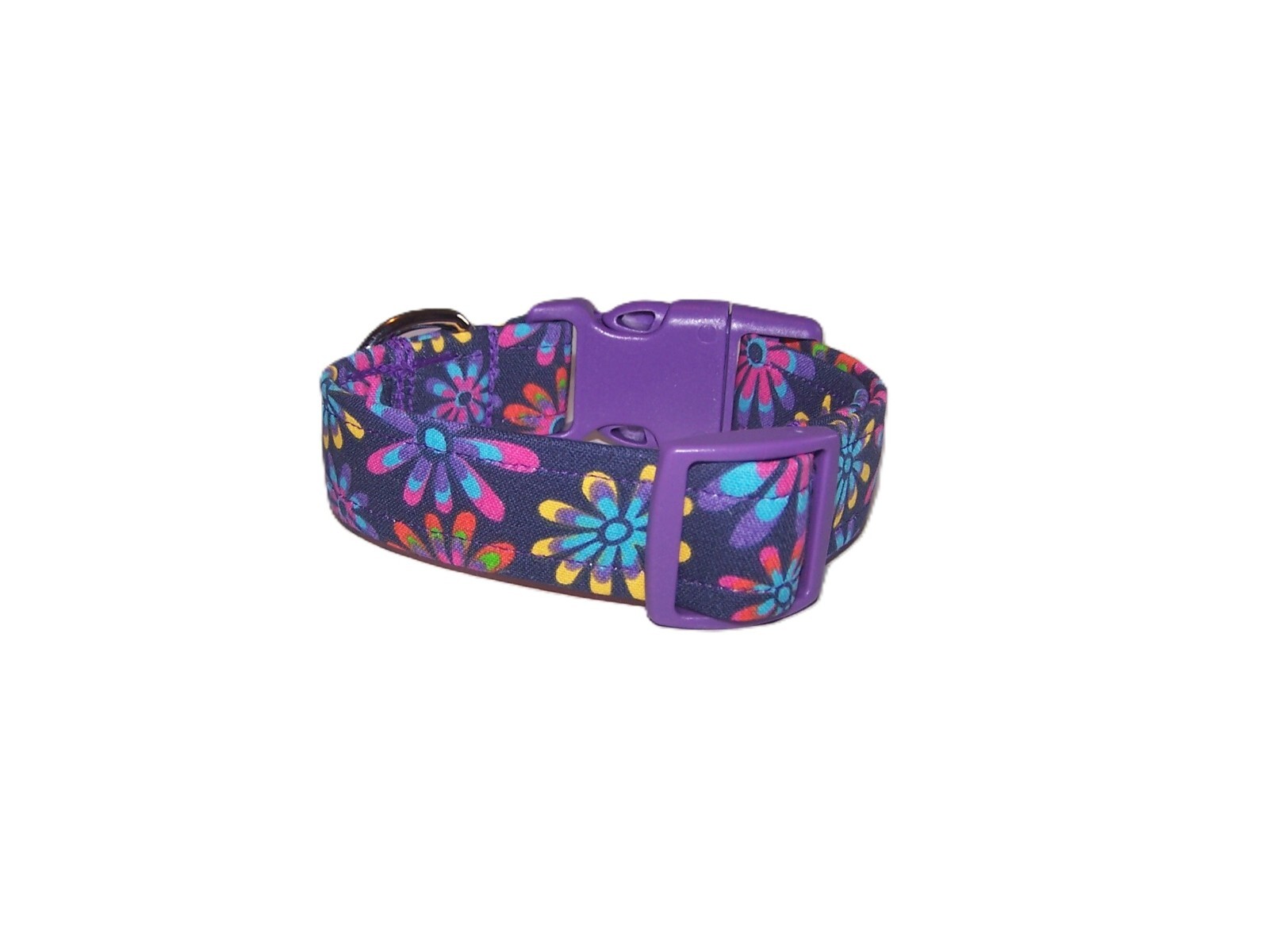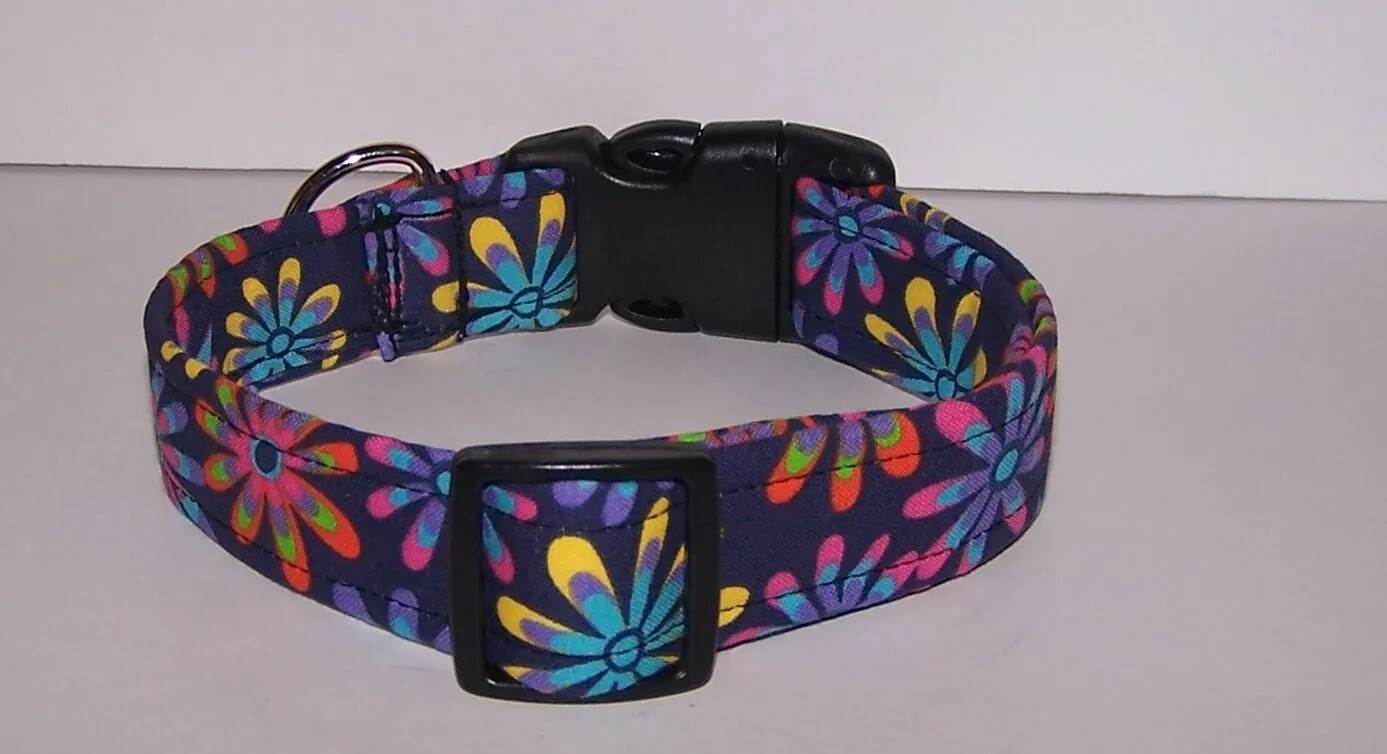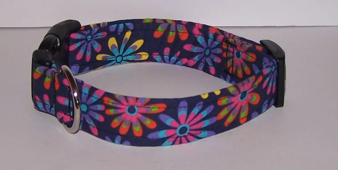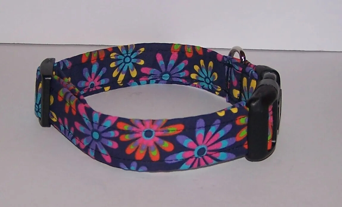 Wet Nose Designs Colorful Fun Flowers Dog Collar on Blue Spring COLOR Buckle