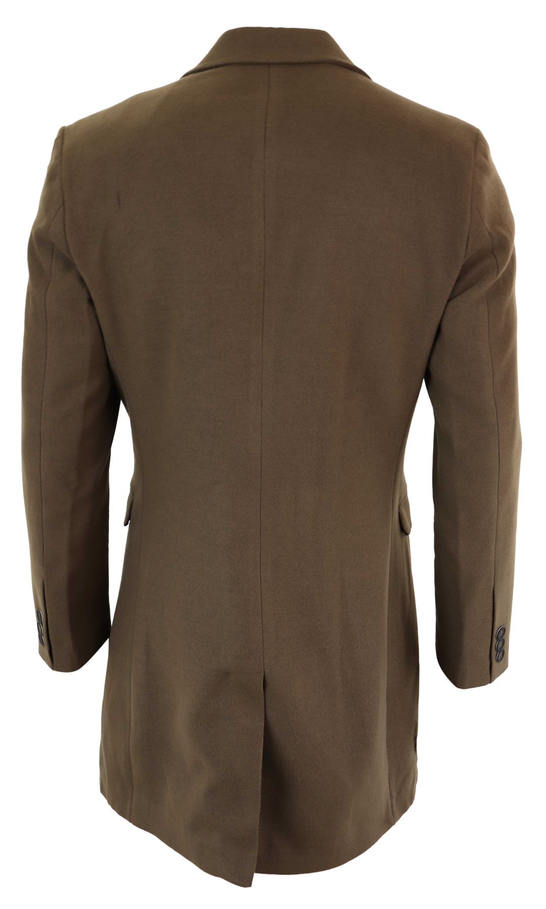 Mens 3/4 Long Overcoat Jacket Wool Feel Coat Blinders Slim Fit