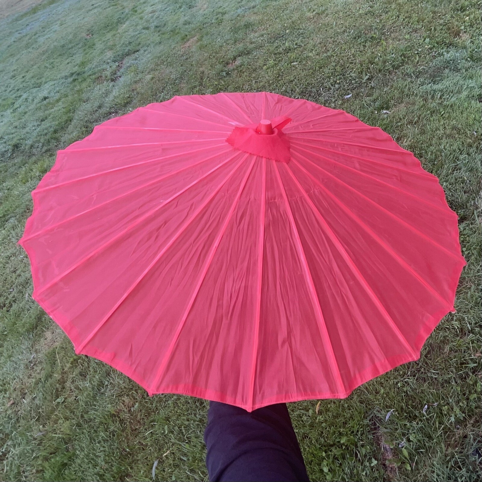 как выглядит Vintage Red Japanese Oriental Style Vinyl Waterproof Parasol Wooden Handled 21 фото
