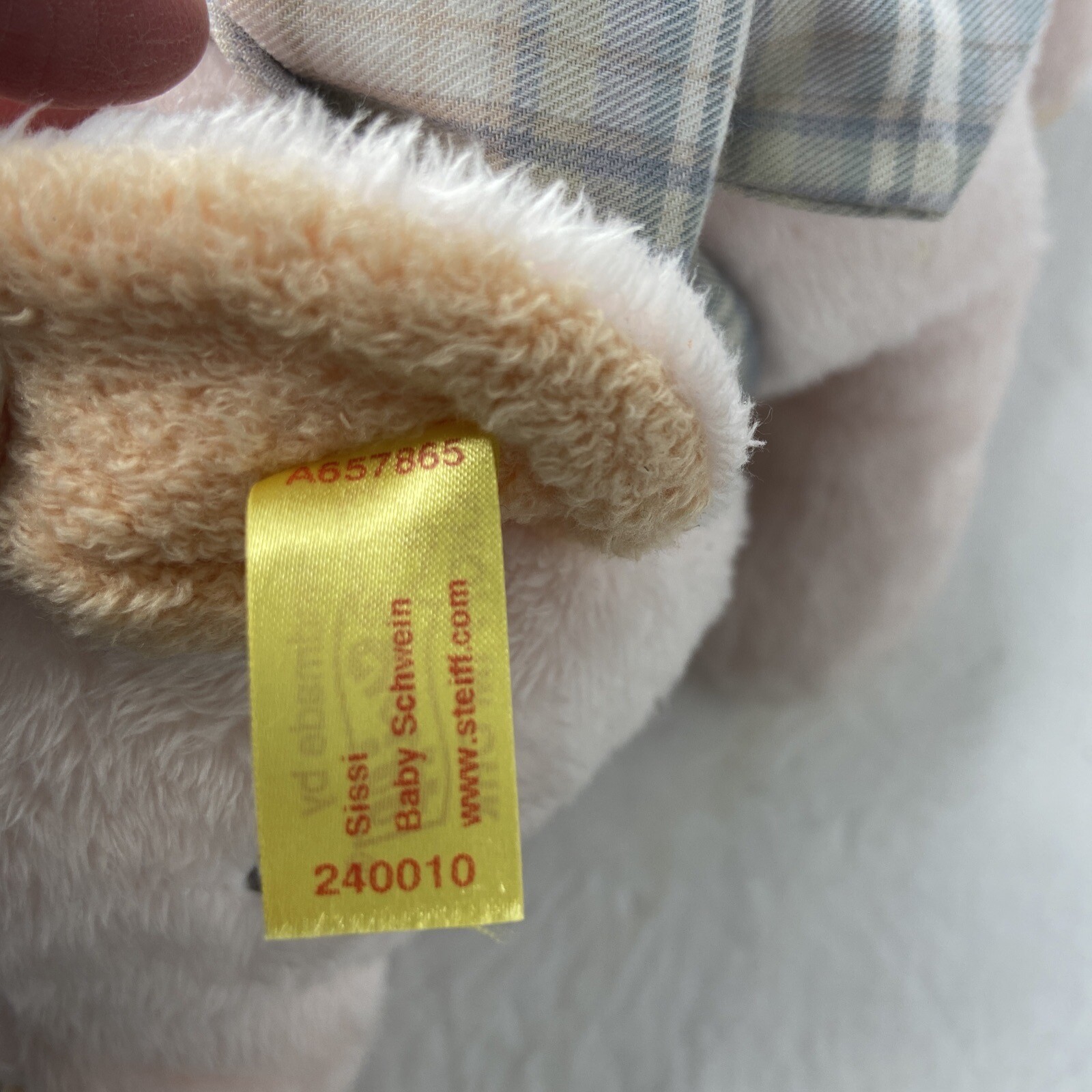 как выглядит Steiff Plush Pig Sissi Pink Brown on feet Hooves 10" Tan Ear Tips w/ Button Tag фото