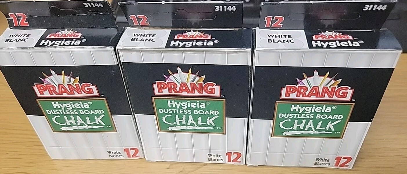 Prang Dustless Hygieia White Chalk 3 Boxes 36 Sticks 31144 Sealed Wrapped