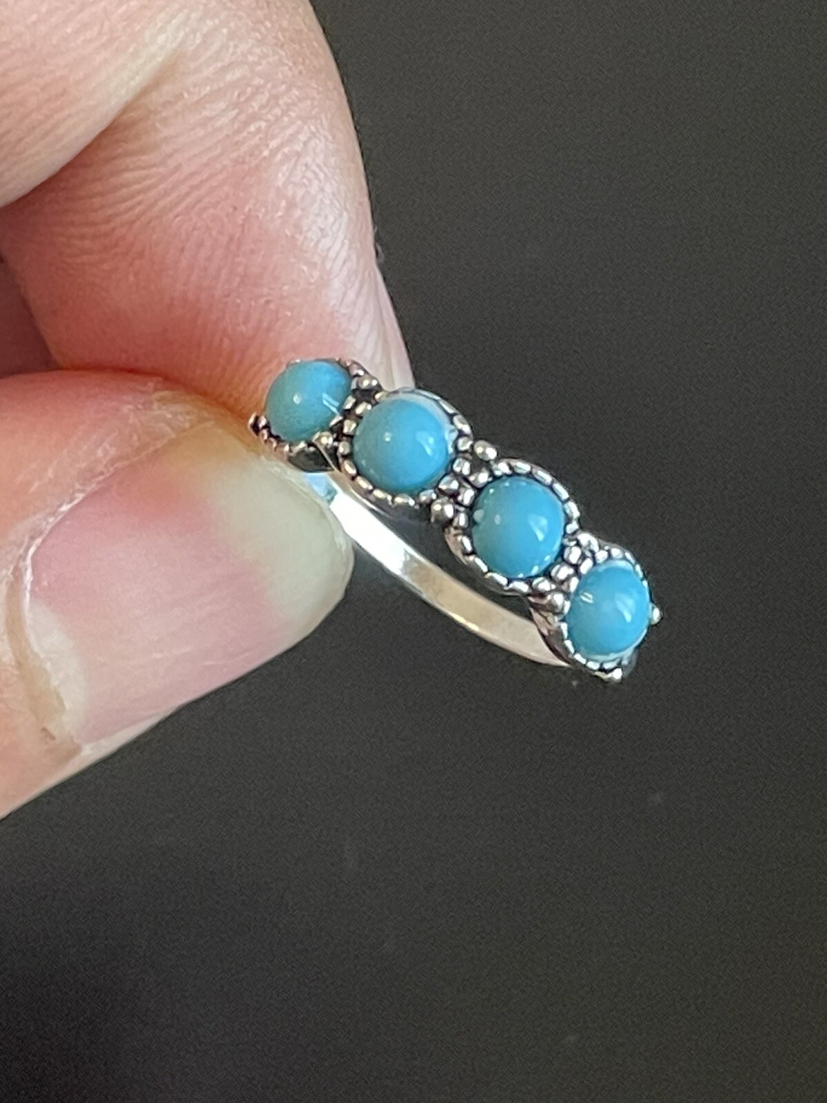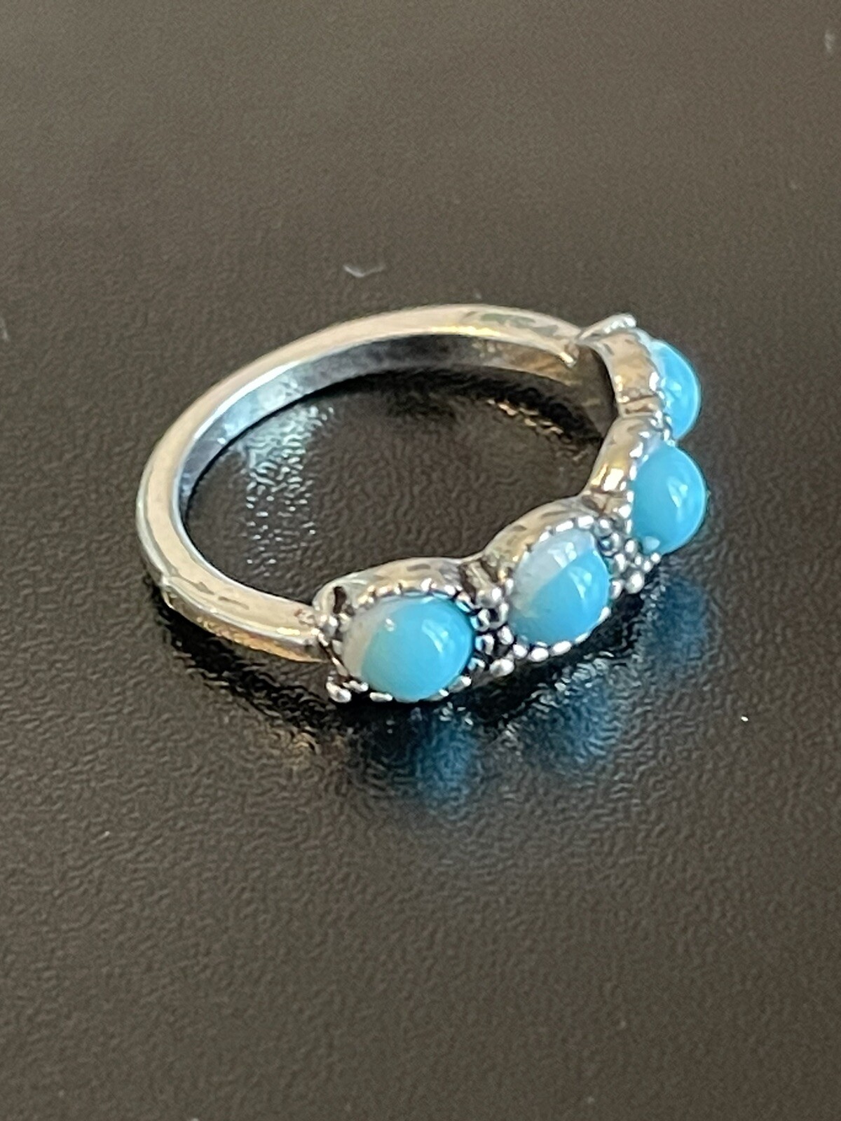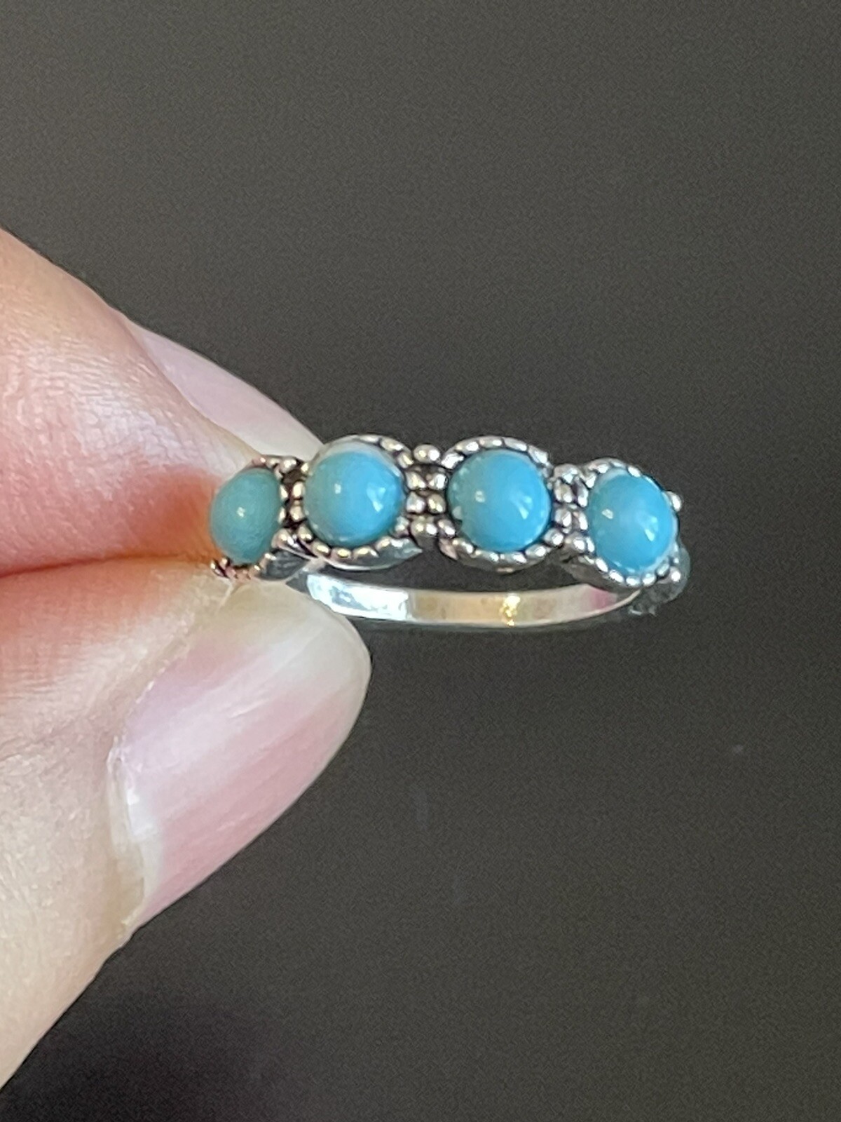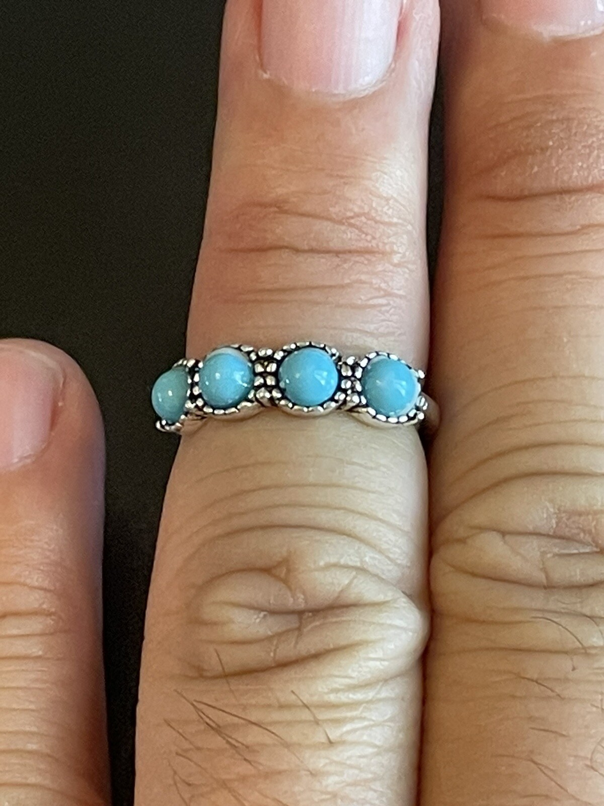 как выглядит Boho Turquoise Stone Silver Plated Woman Ring фото