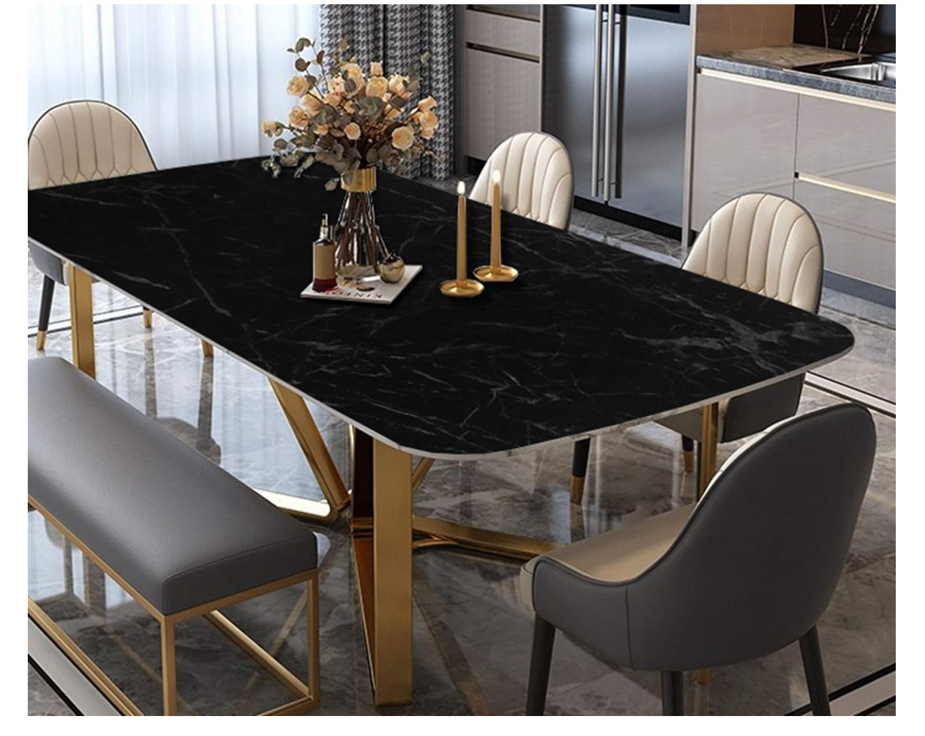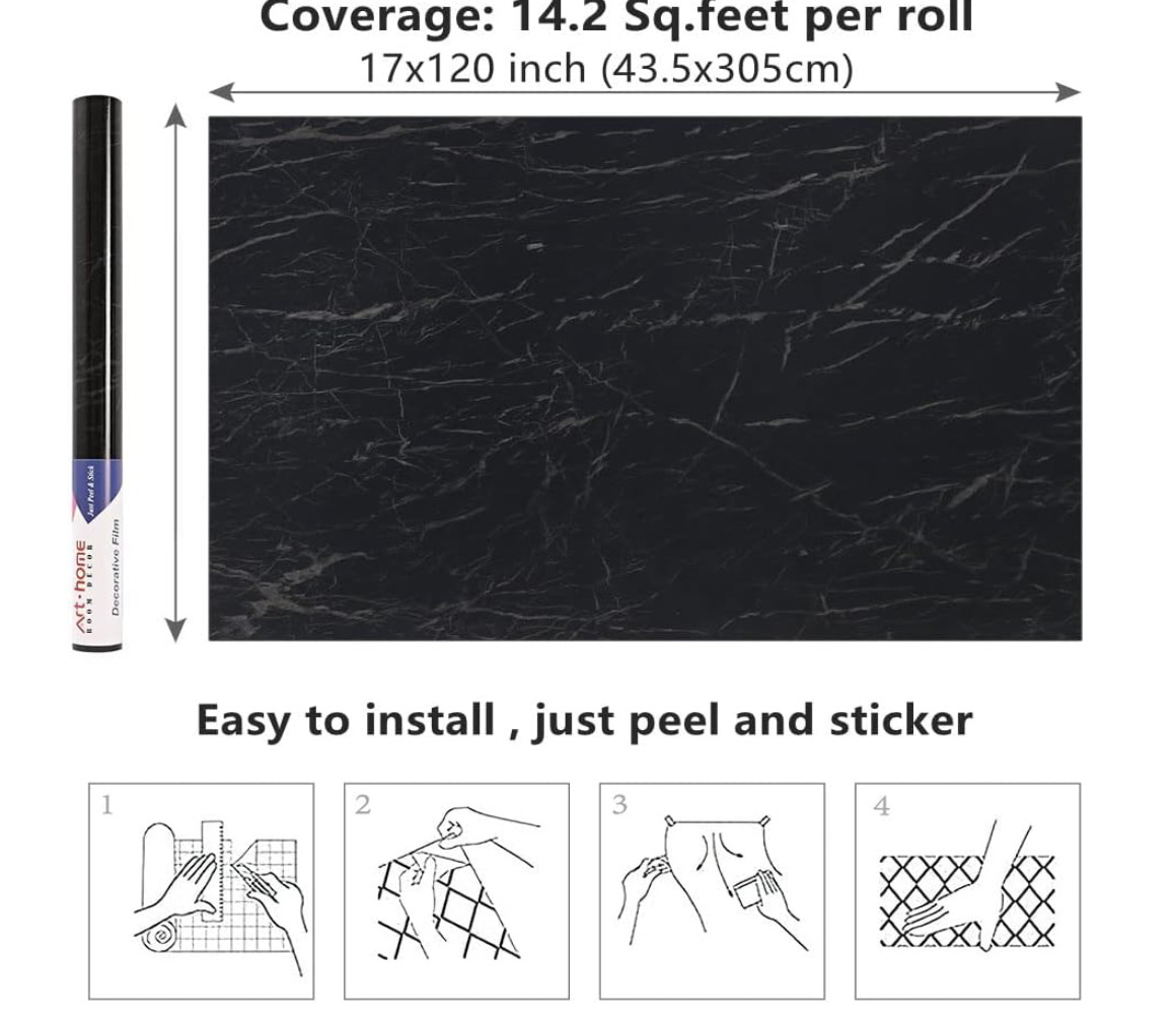 Arthome Black Marble Wallpaper,17x120 Peel and Stick Wallpaper, 3 ROLLS