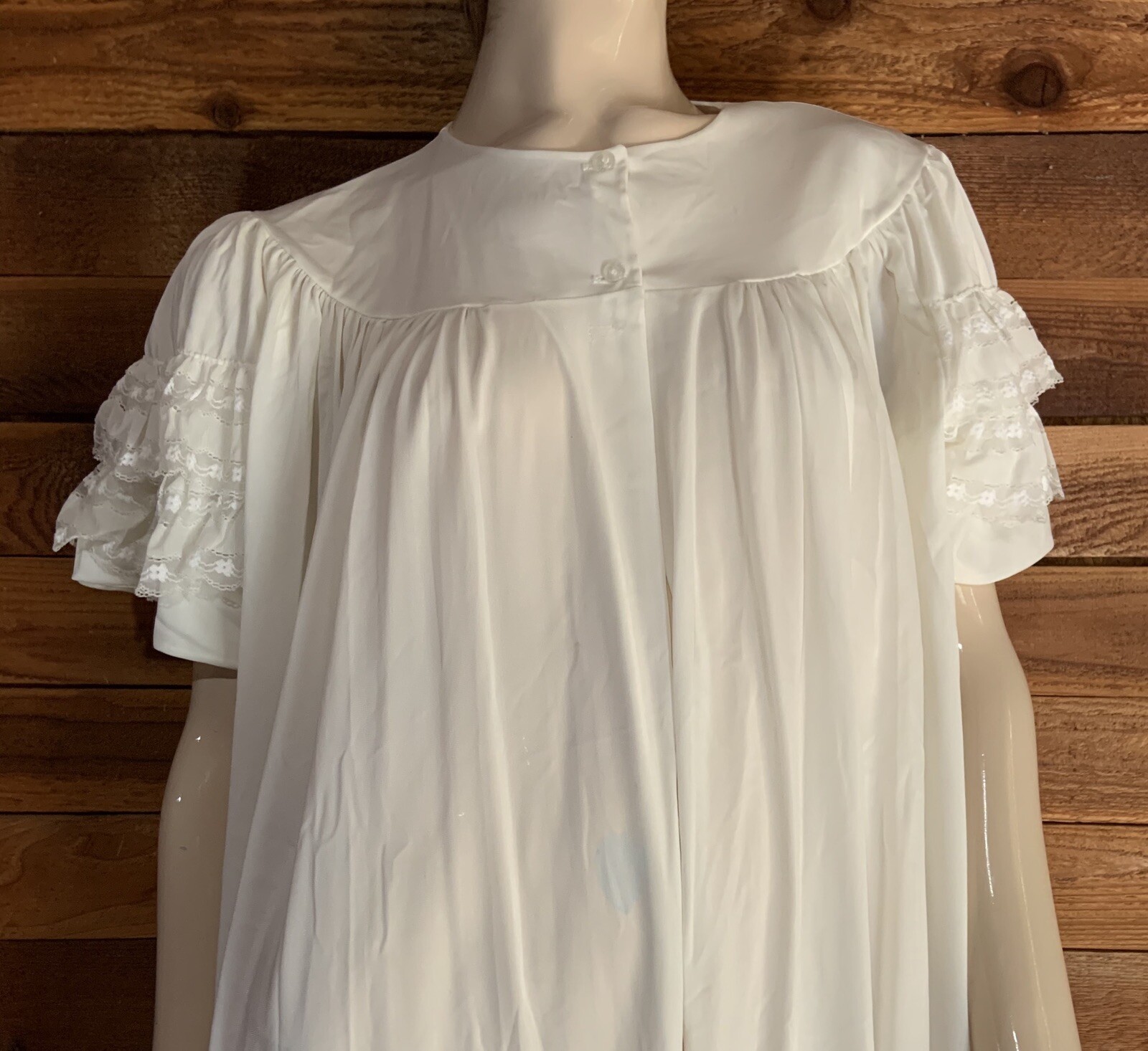 как выглядит VINTAGE IVORY SIZE XL NYLON ROBE with LACE TRIM SLEEVES 11594 фото