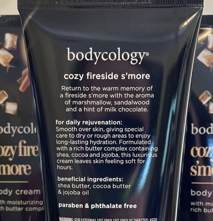 3 Bodycology Cozy Fireside S'more Body Cream with rich butter complex 8 oz. ea