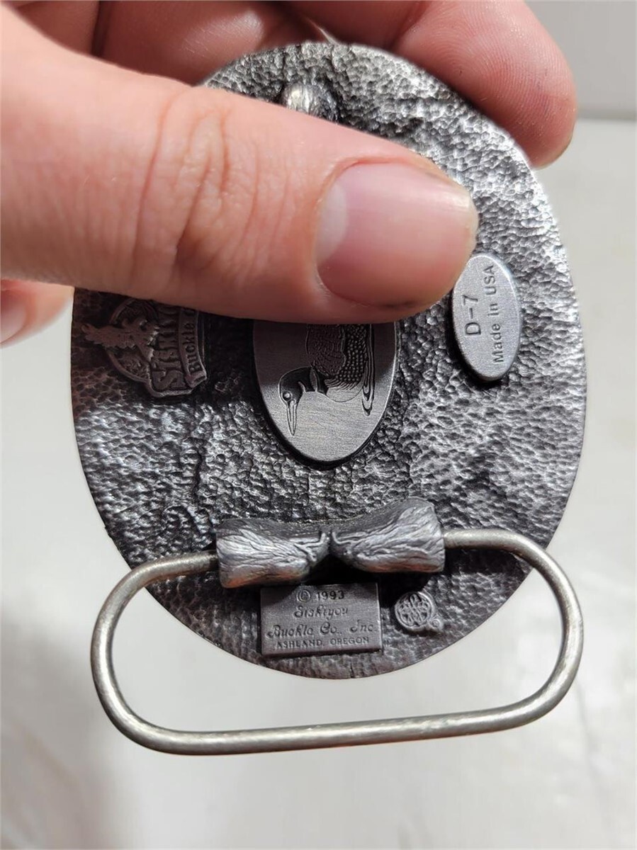 Vintage 1993 Belt Buckle Duck Hunter Bird Sportsman Siskiyou D-7 made in U.S.A.