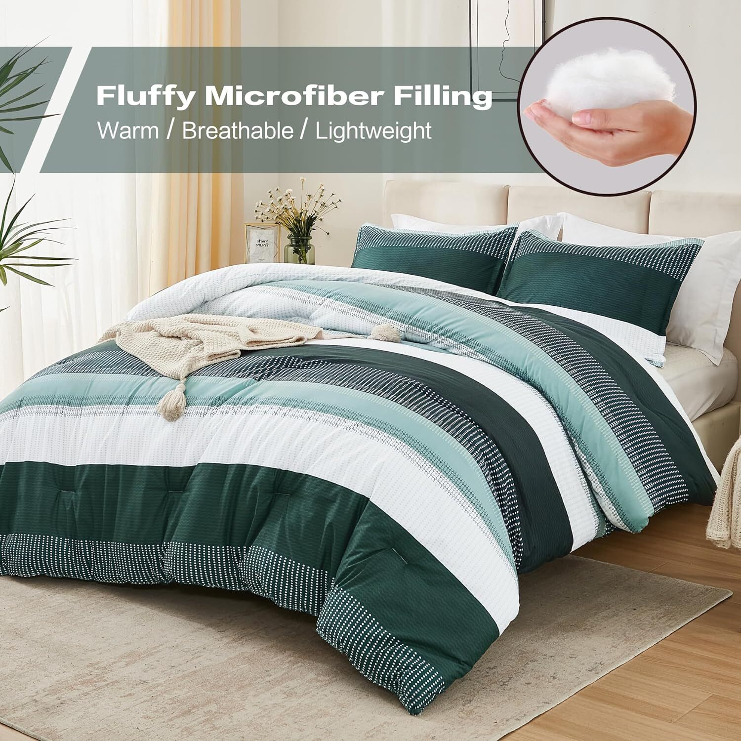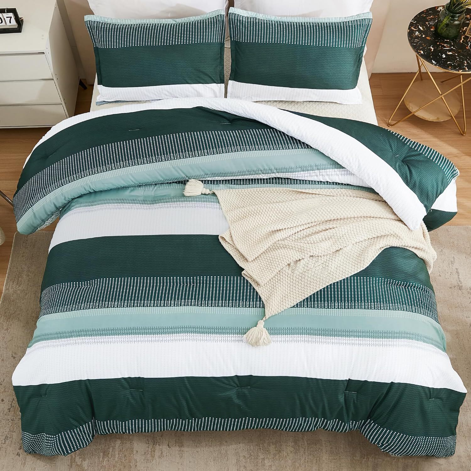 Litanika Dark Emerald Green King Bed Comforter Set, 3 King, Grey