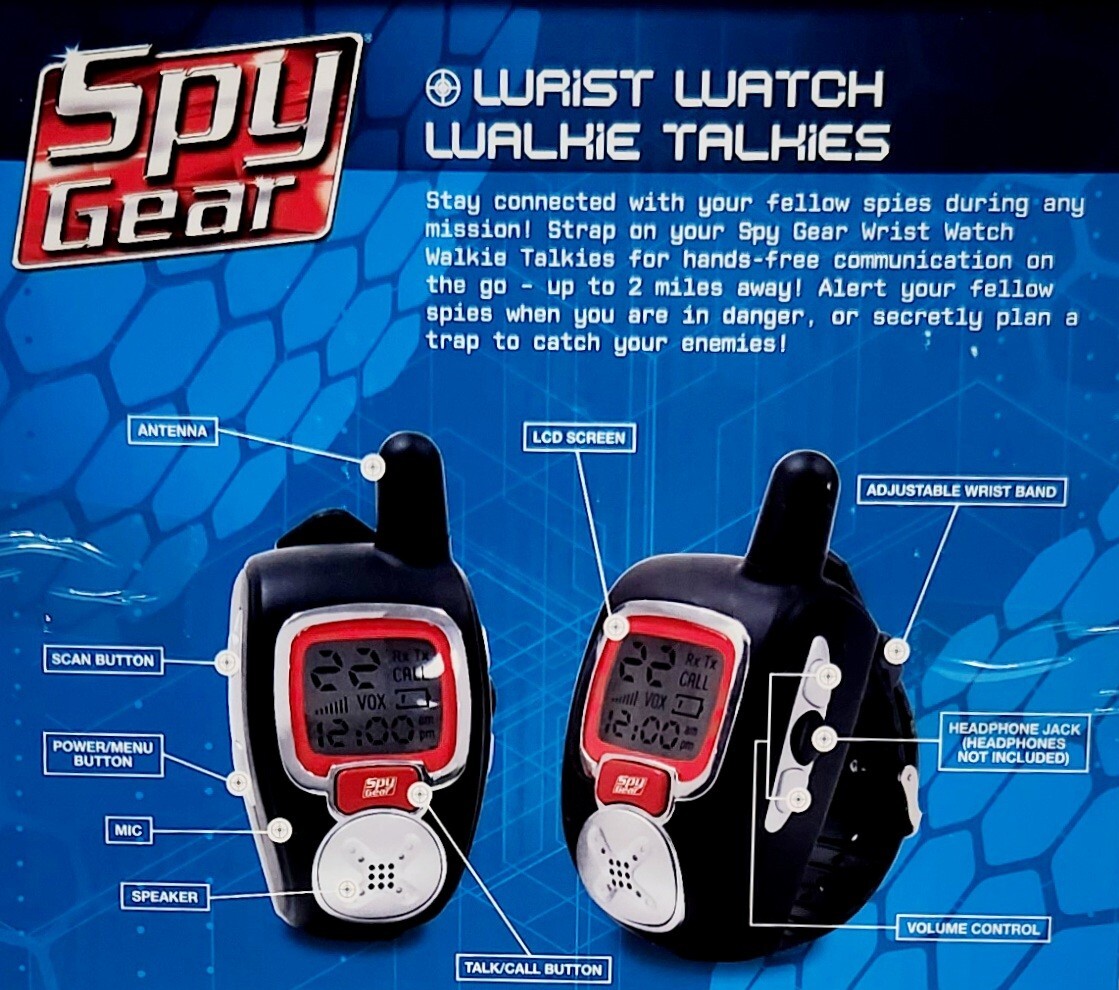 Spy Gear Wrist Walkie Talkies 2 Mile Range LCD Screen Headphone Jack Mic Spying
