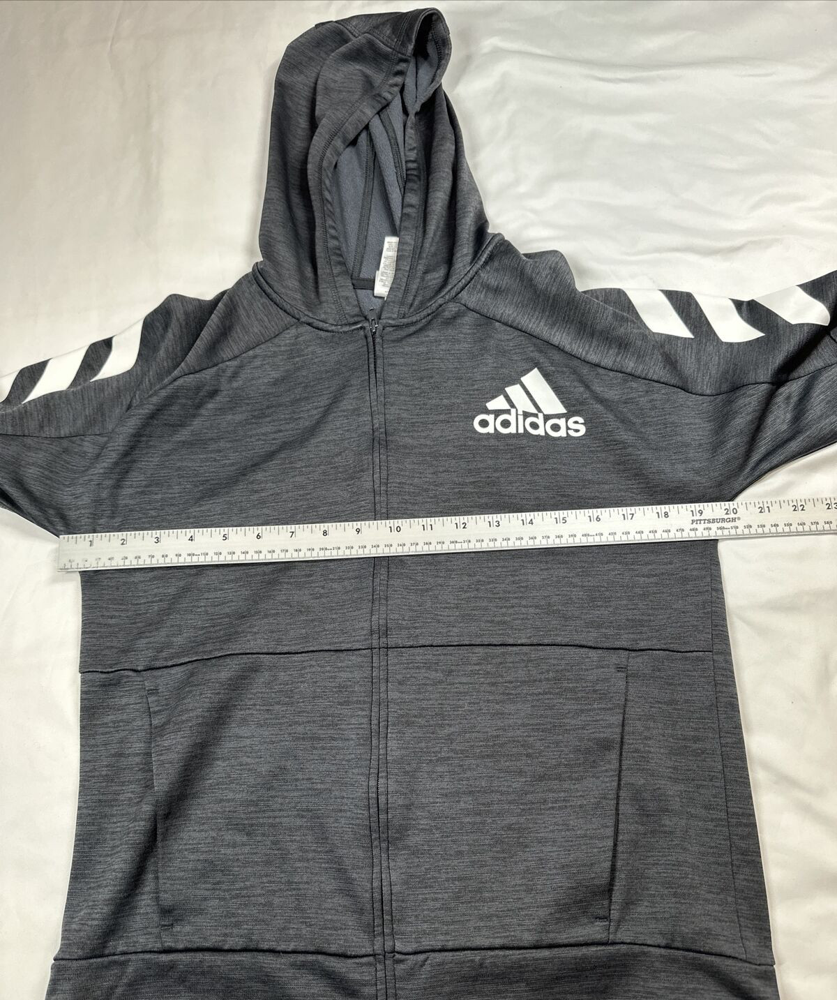 Adidas Youth Large 14/16 Full Zip Hoodie Dark Gray White