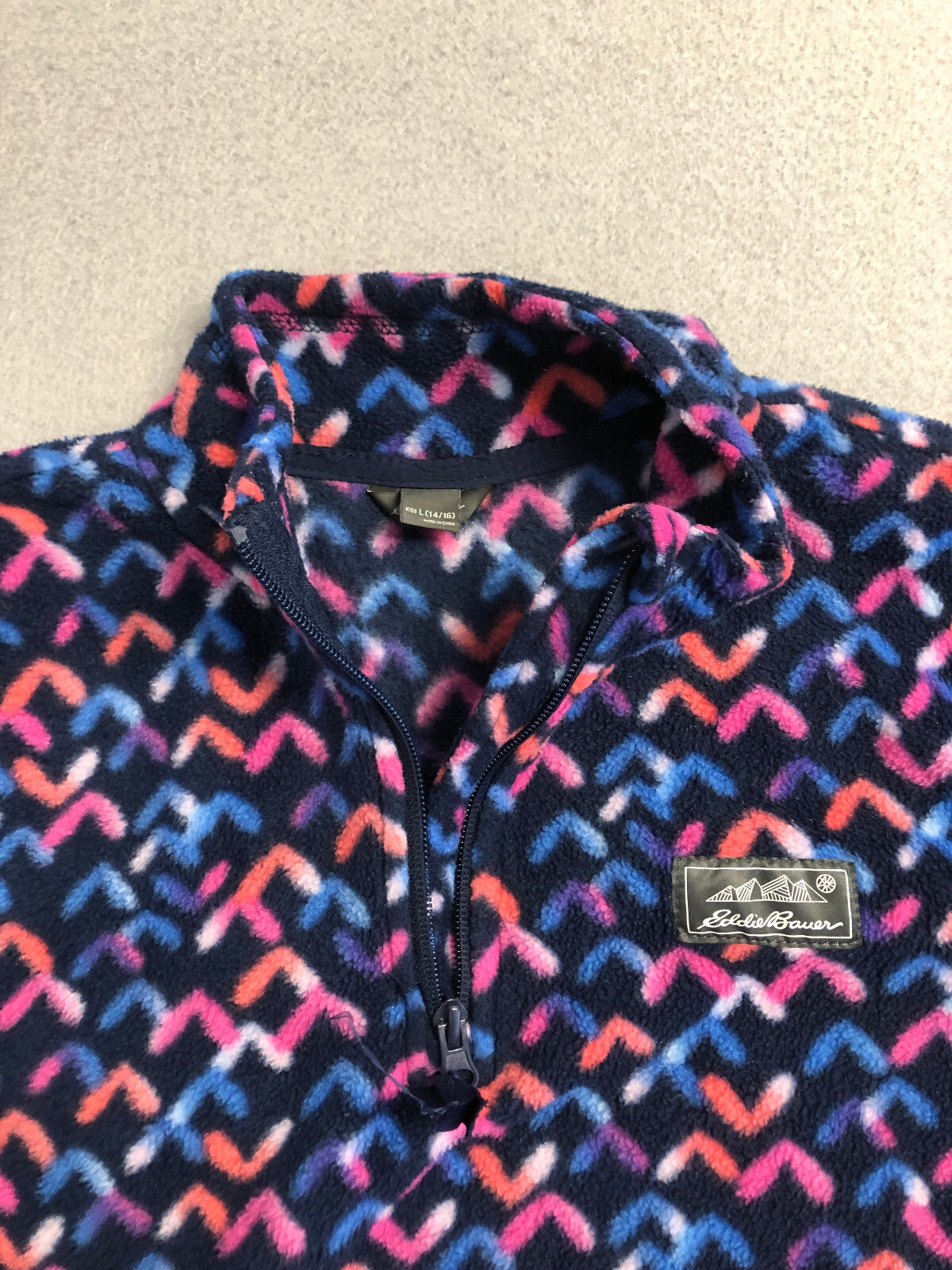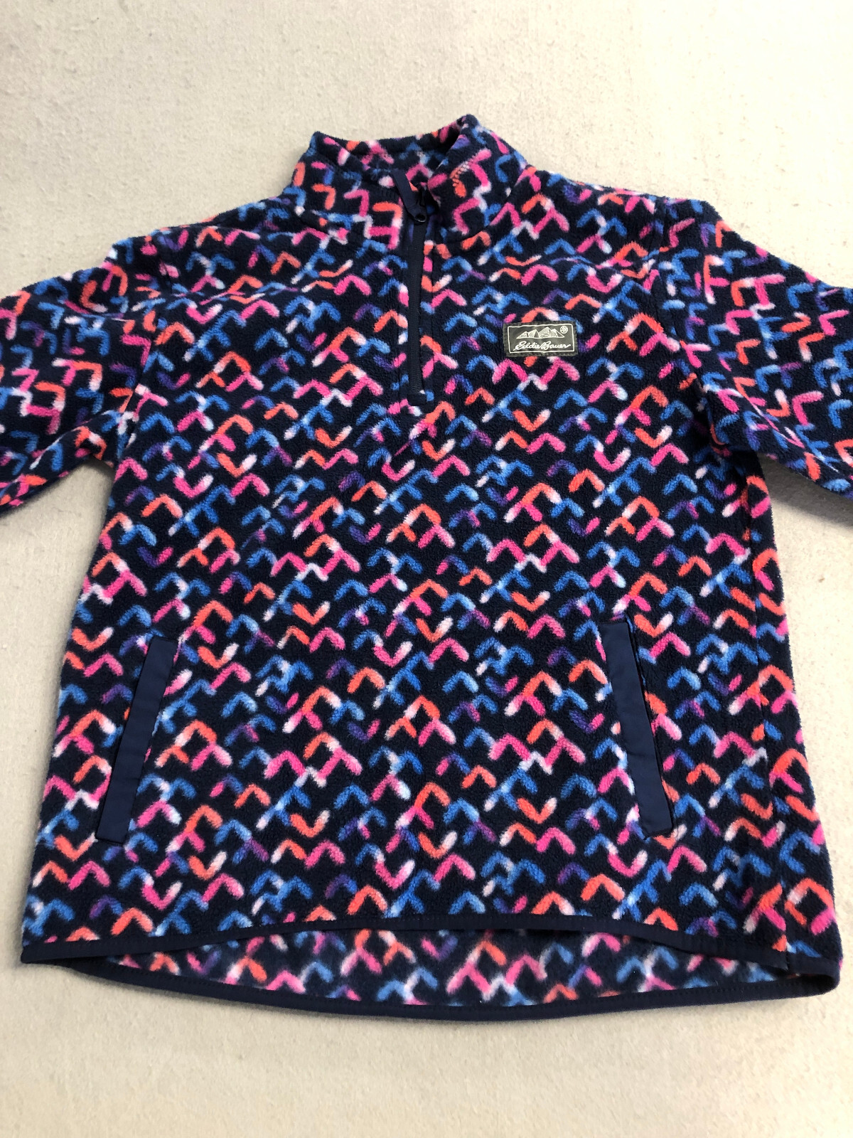 как выглядит Eddie Bauer Kids Large 14-16 Sweatshirt Black/Blue/Red Fleece 1/4 Zip фото