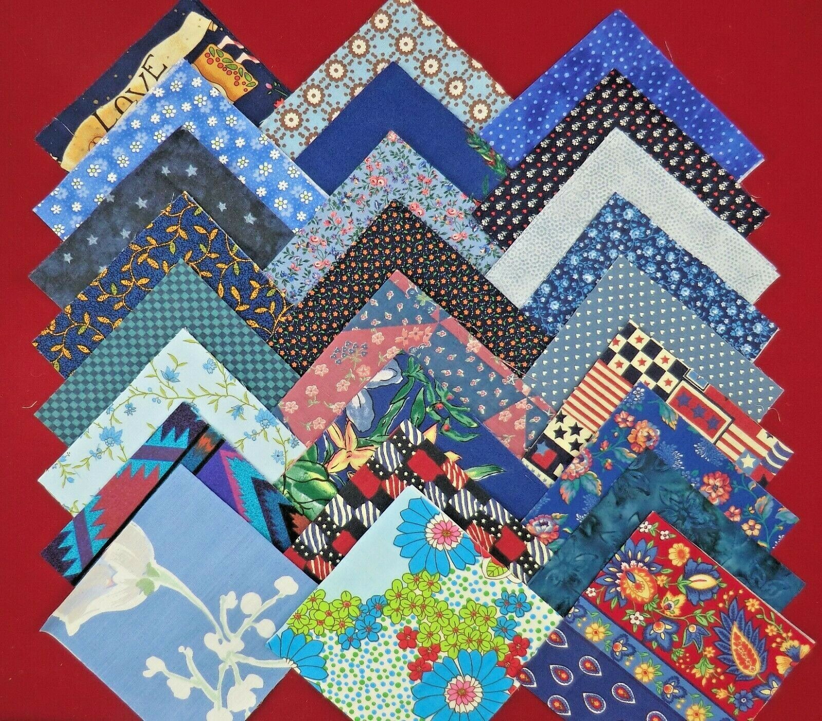 как выглядит 100 PCS BLUE QUILT FABRIC 5" SQUARES 100 COTTON CHARM PACK FREE SHIPPING фото