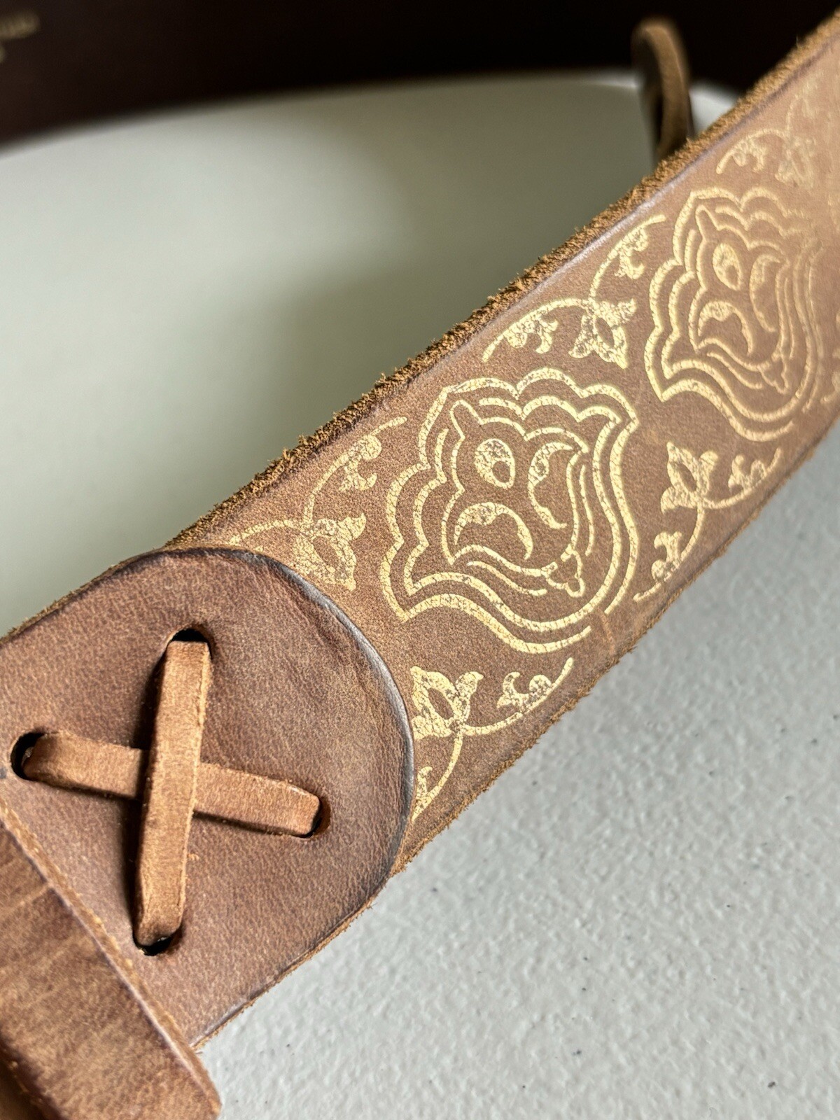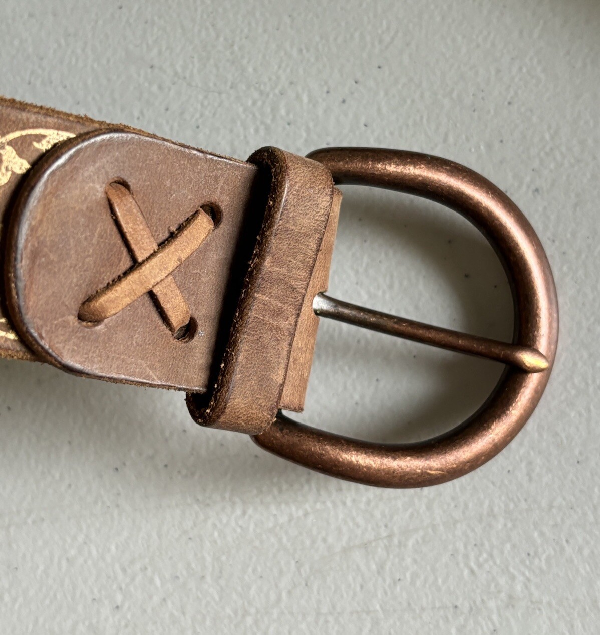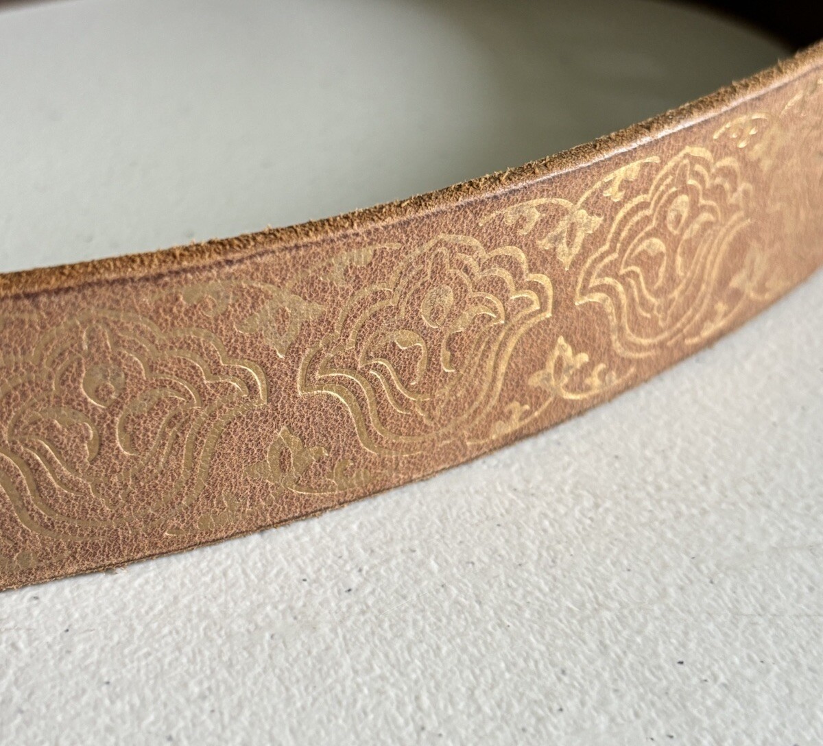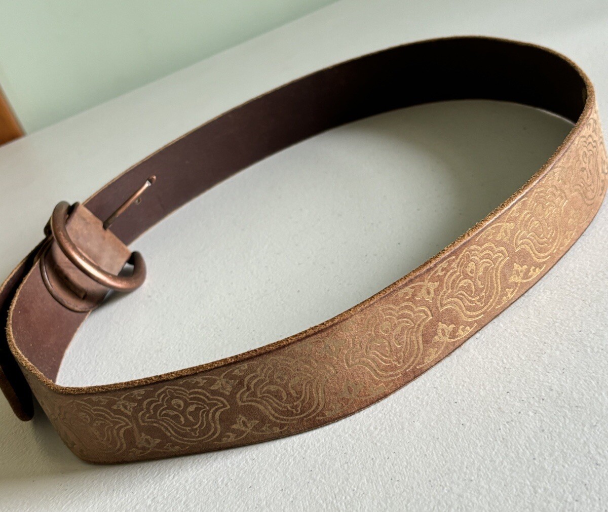 как выглядит Gap Jeans 1969 Henna Pattern Genuine Leather w/ Brass Buckle Belt Size L USA фото