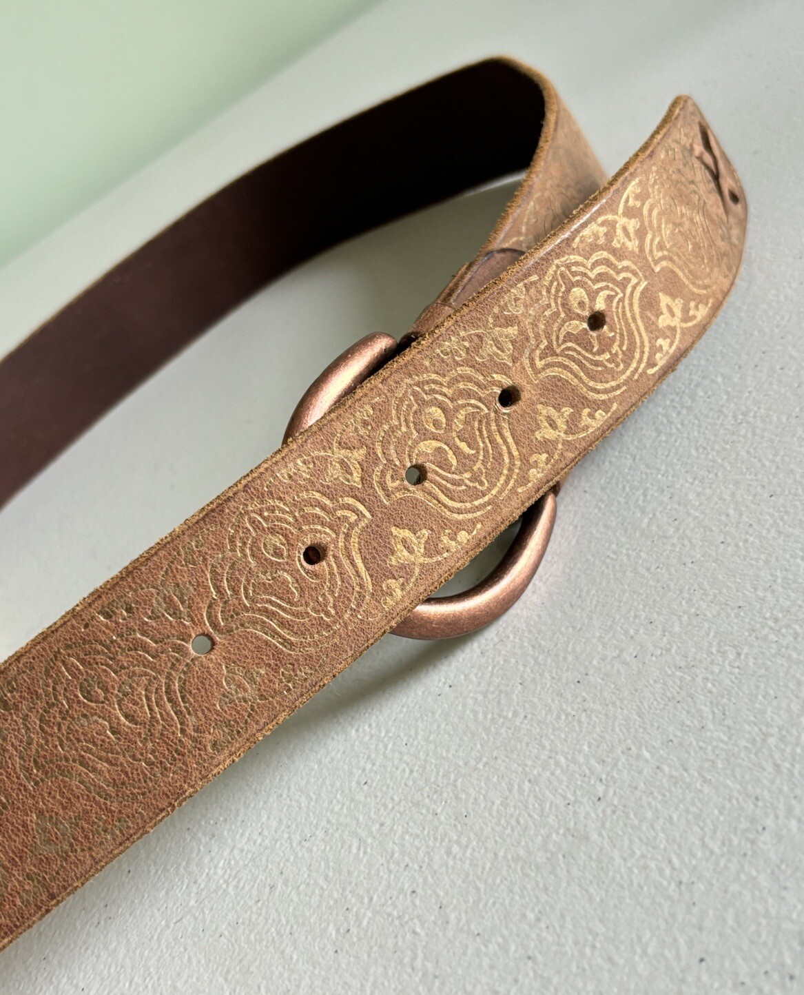 Gap Jeans 1969 Henna Pattern Genuine Leather w/ Brass Buckle Belt Size L USA