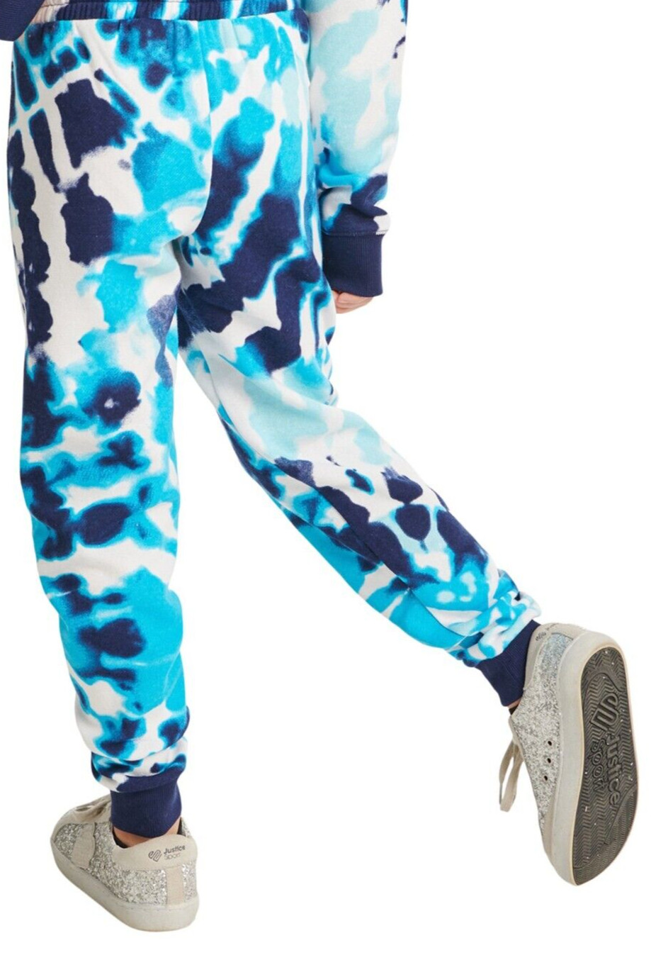 NWT - Justice Girls Everyday Fleece Tie Dye Jogger Turquoise Spiral Tie -Size 10