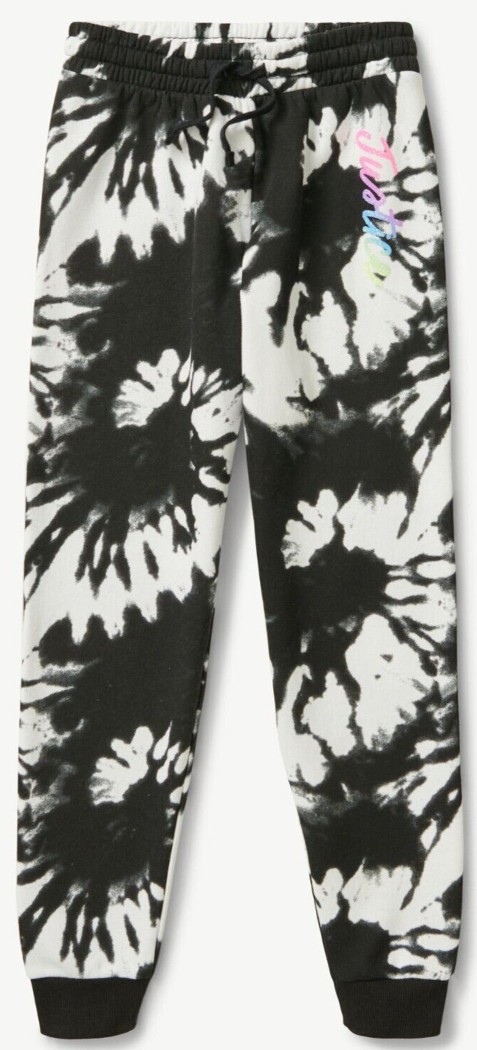 NWT - Justice Girls Everyday Fleece Joggers Black Spiral - Size 7/8 - FREE SHIP