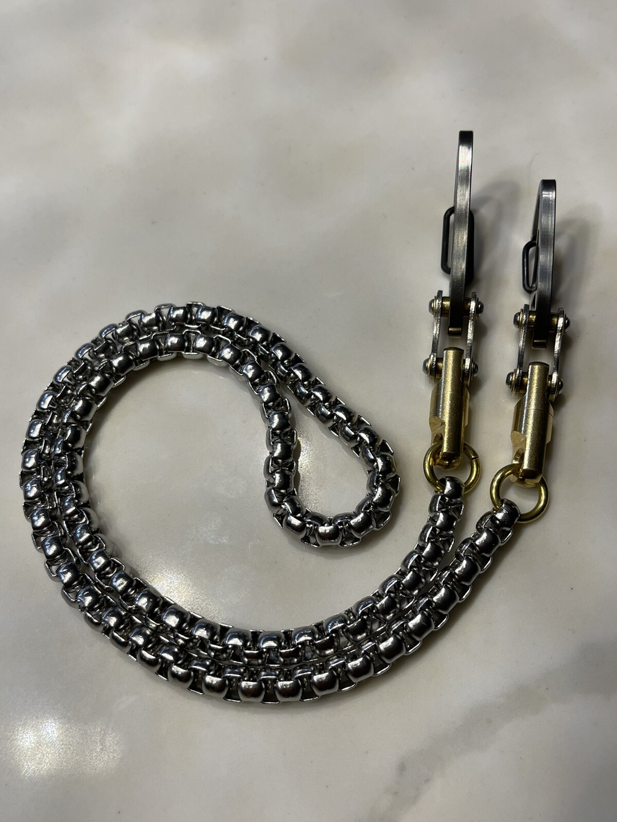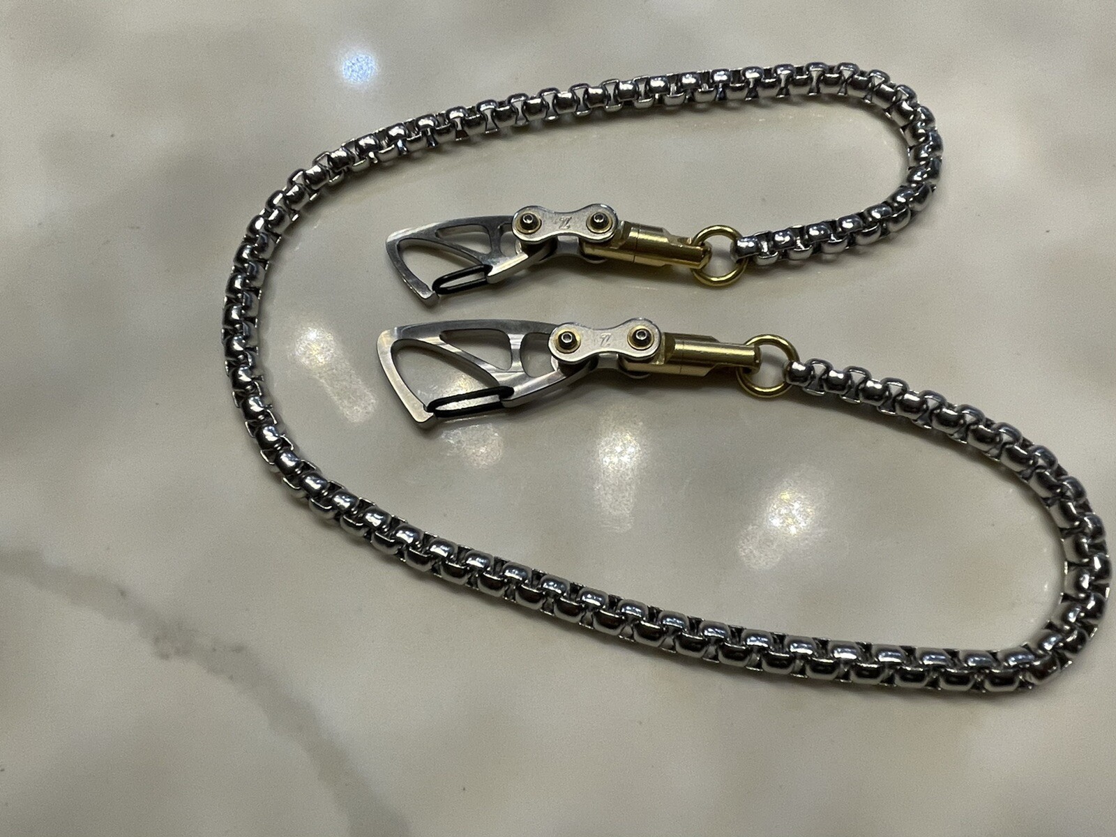Biker Wallet Chain w/Titanium Carabiners, Stainless Steel Chain, 25-7/8 Inch