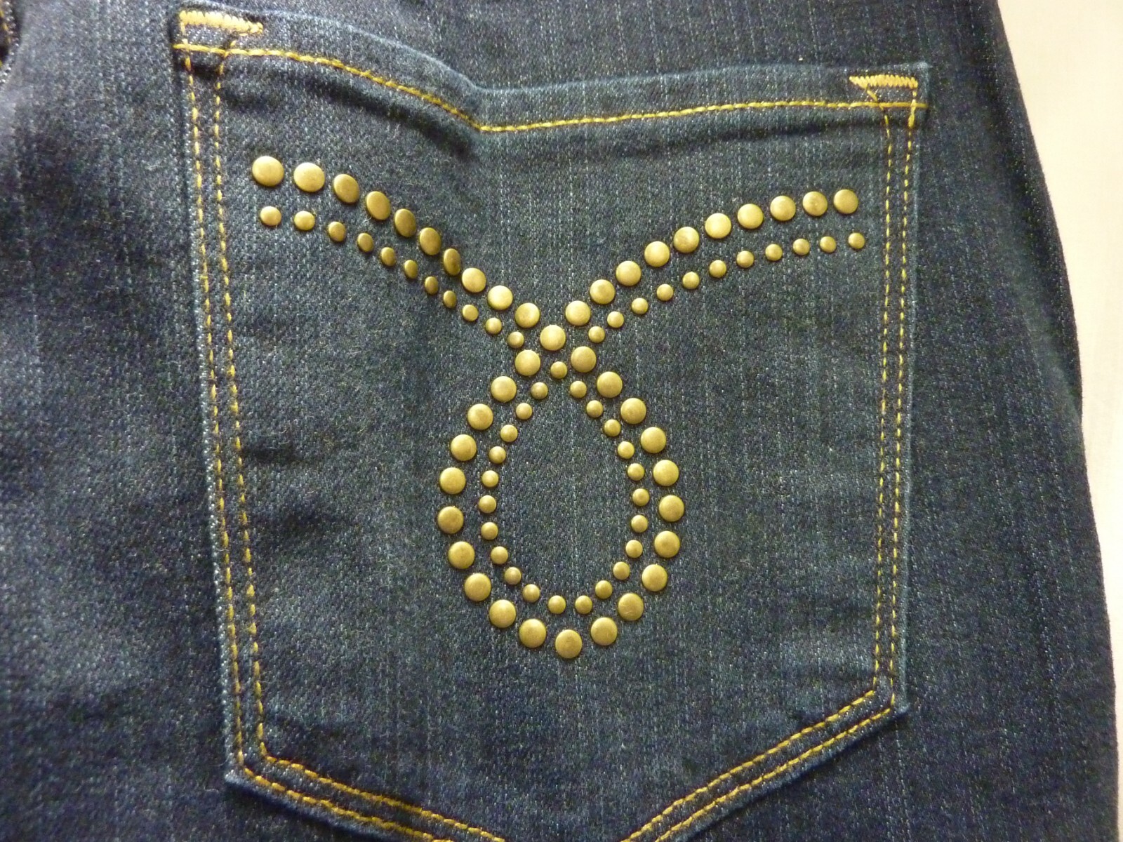 NYDJ BOOTCUT JEANS SIZE 14 HIGH RISE DARK WASH EMBELISHED BACK POCKETS 34X31.5