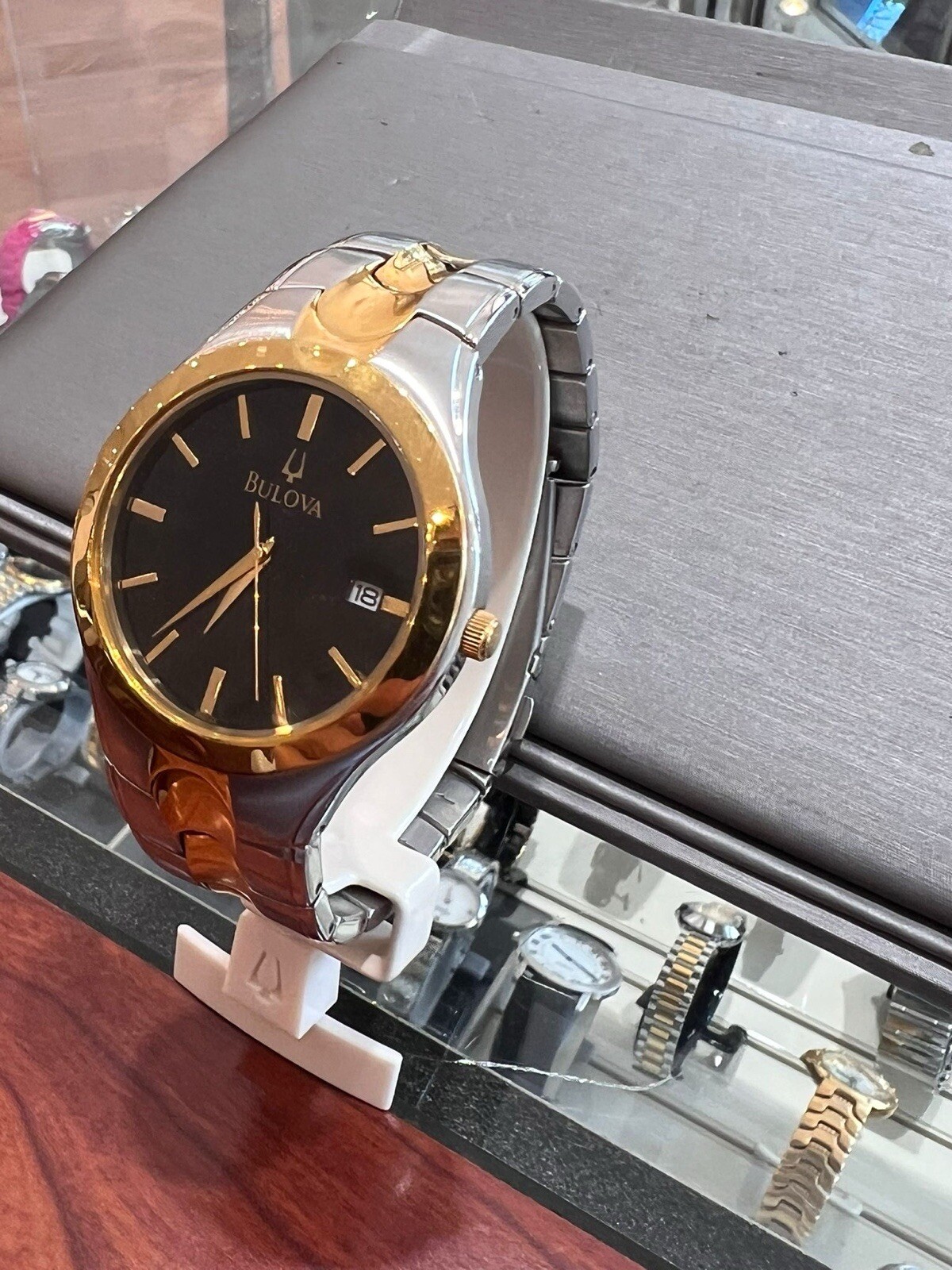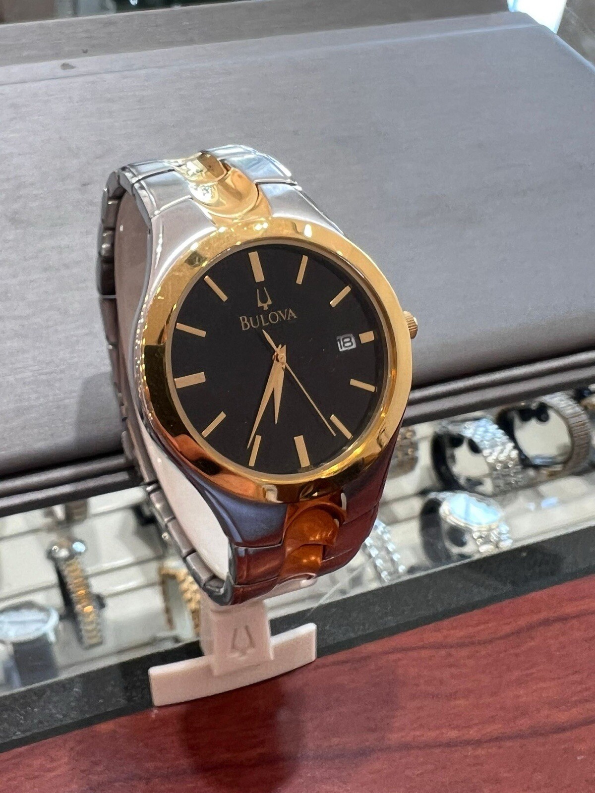 Bulova Mens Watch Two Tone Black Dial 39mm REF 98B133