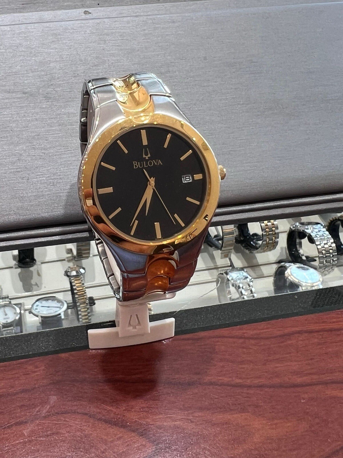 как выглядит Bulova Mens Watch Two Tone Black Dial 39mm REF 98B133 фото