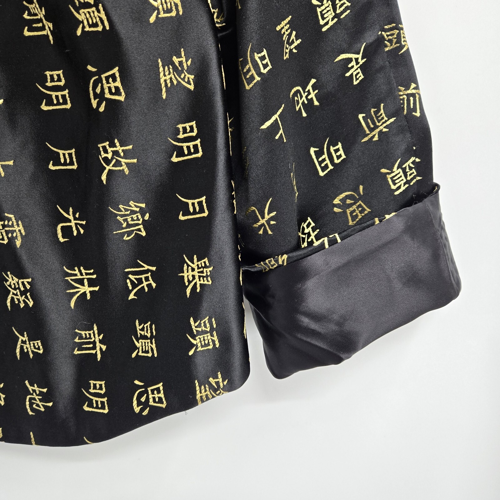 Black Satin Jacket Women's Vintage Brocade Gold Asian Writing Size Small