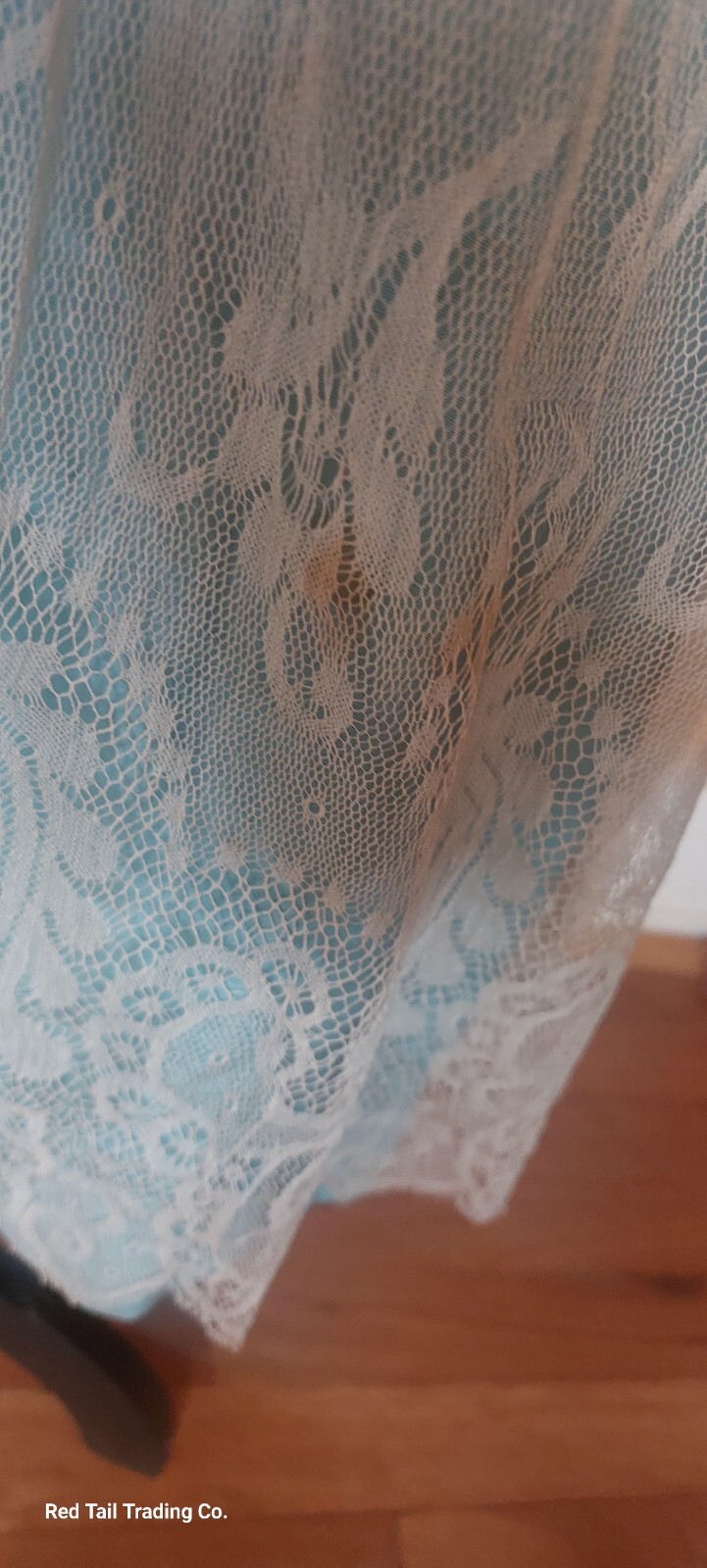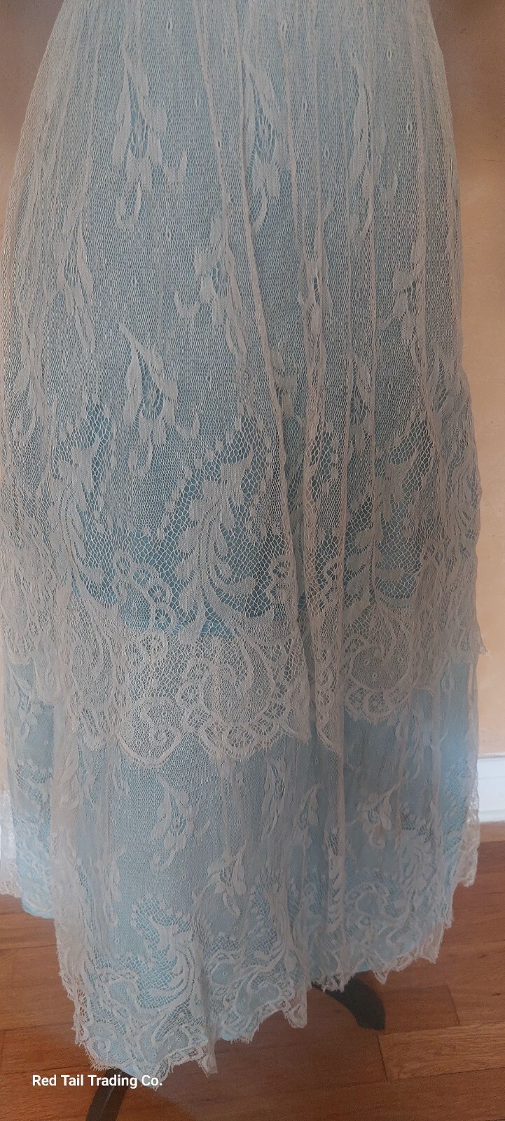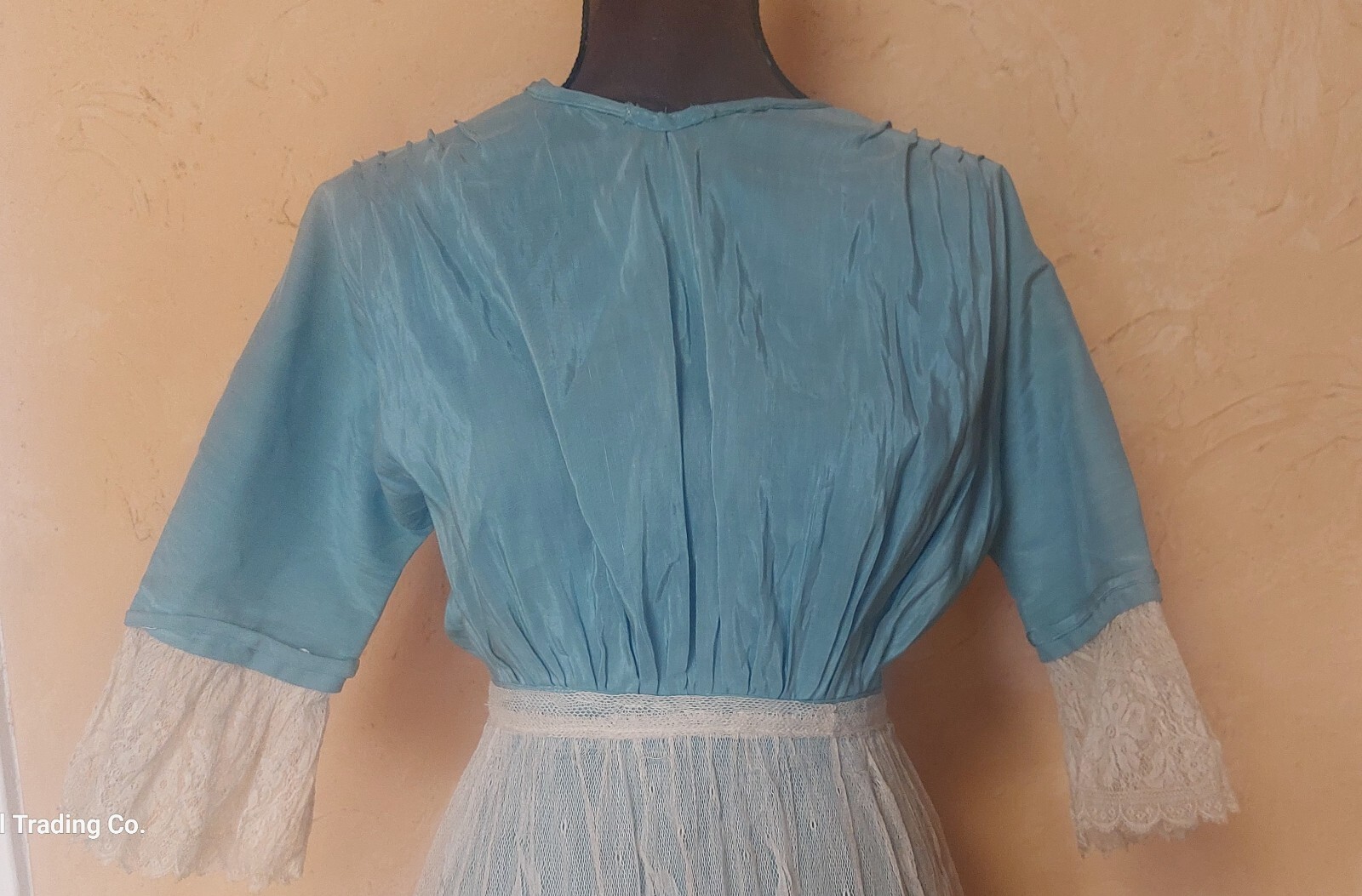 как выглядит Beautiful Edwardian Teal Silk Dress W/ Intricate Lace Overlay And Sleeves Sm фото