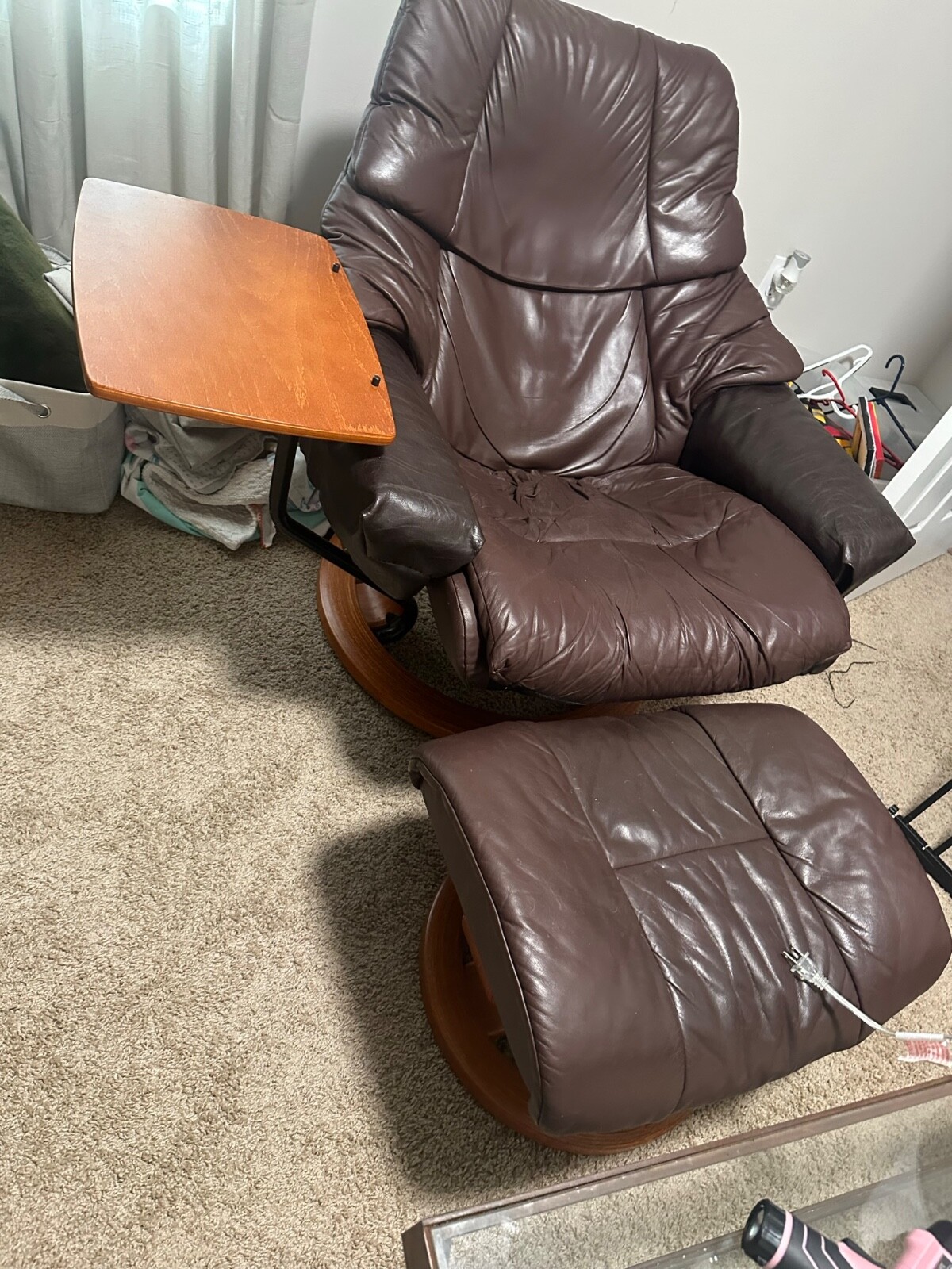 как выглядит Ekornes Stressless Recliner Chair Large Reno Leather Ottoman Norway MCM фото