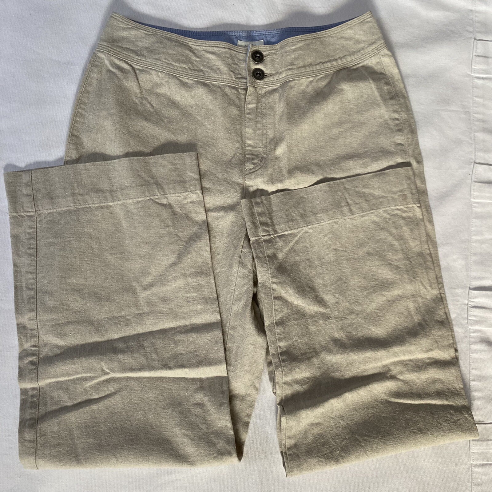 Liz Claiborne Vintage Wide Leg Linen Blend Pants 8P Natural