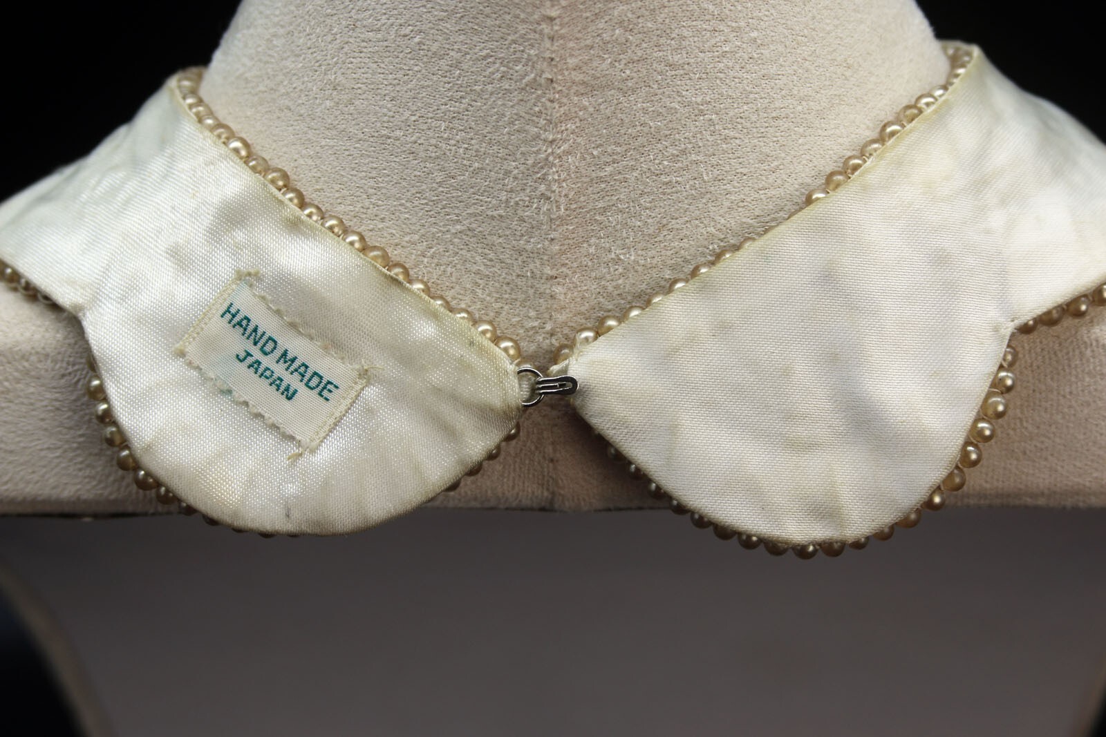 Sweet 1950's Vintage Beaded Sweater Collar Champagne Ivory Hand Beaded Japan