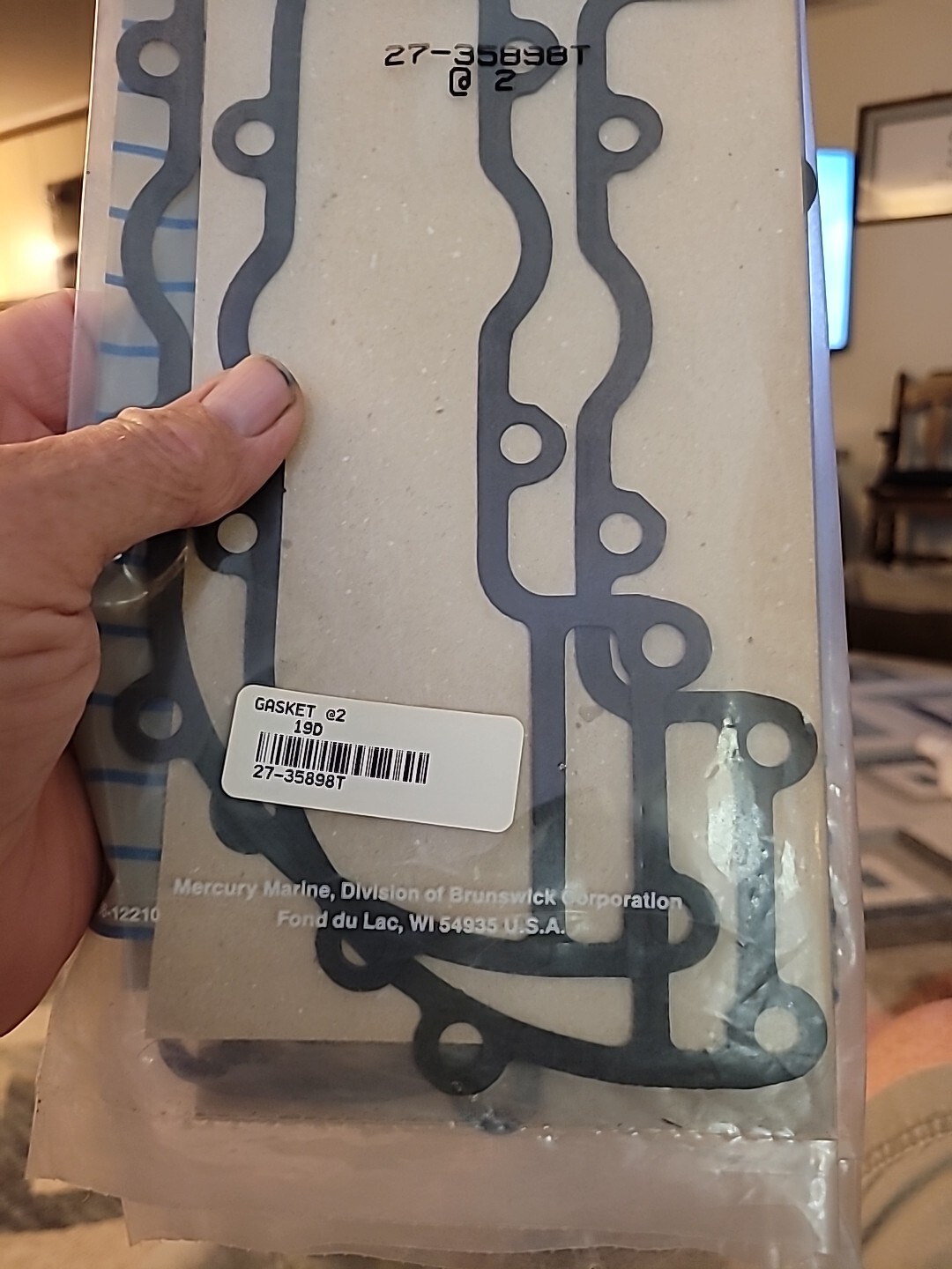 Quicksilver Gasket Replacement Part 27-35898 Package Contains 2 Gaskets