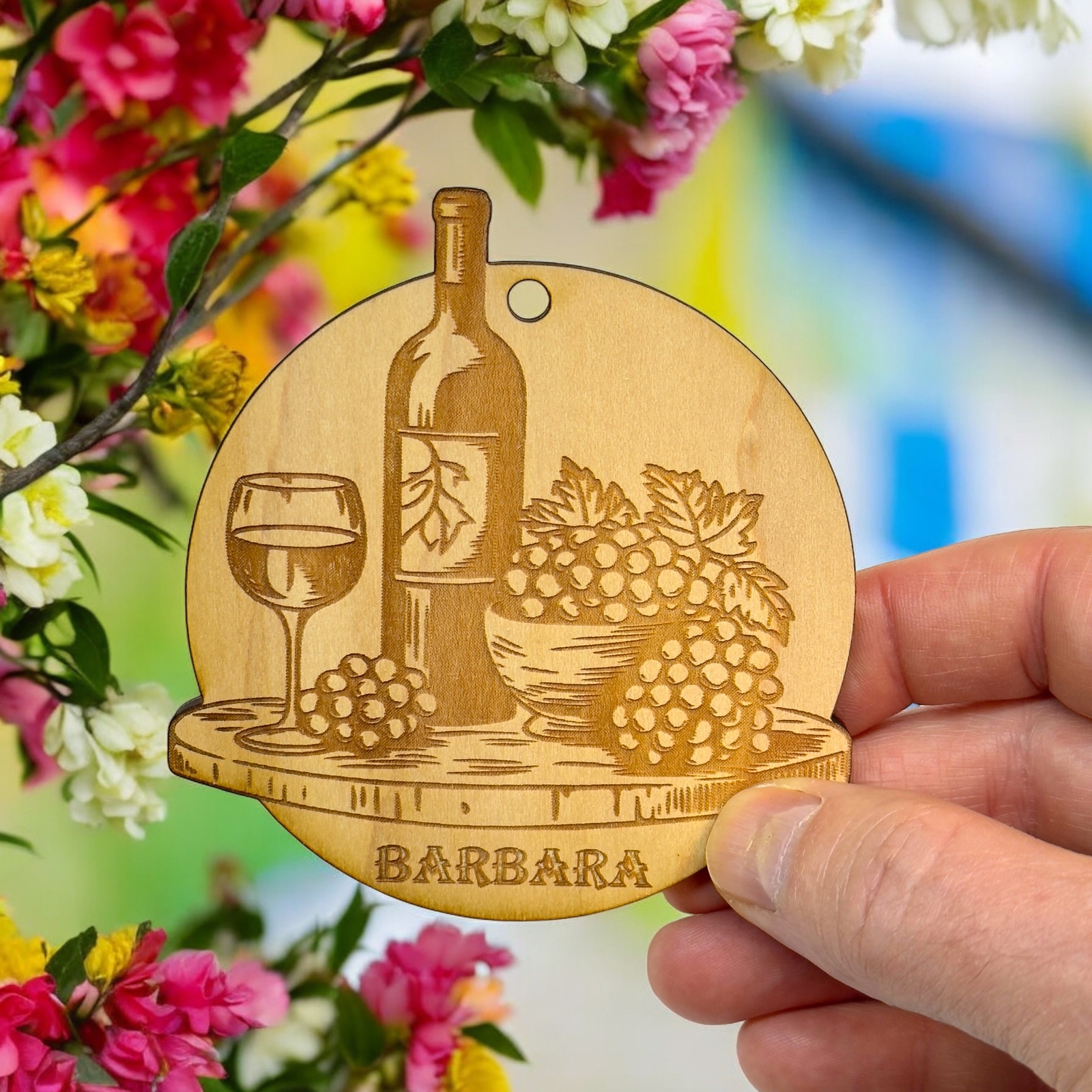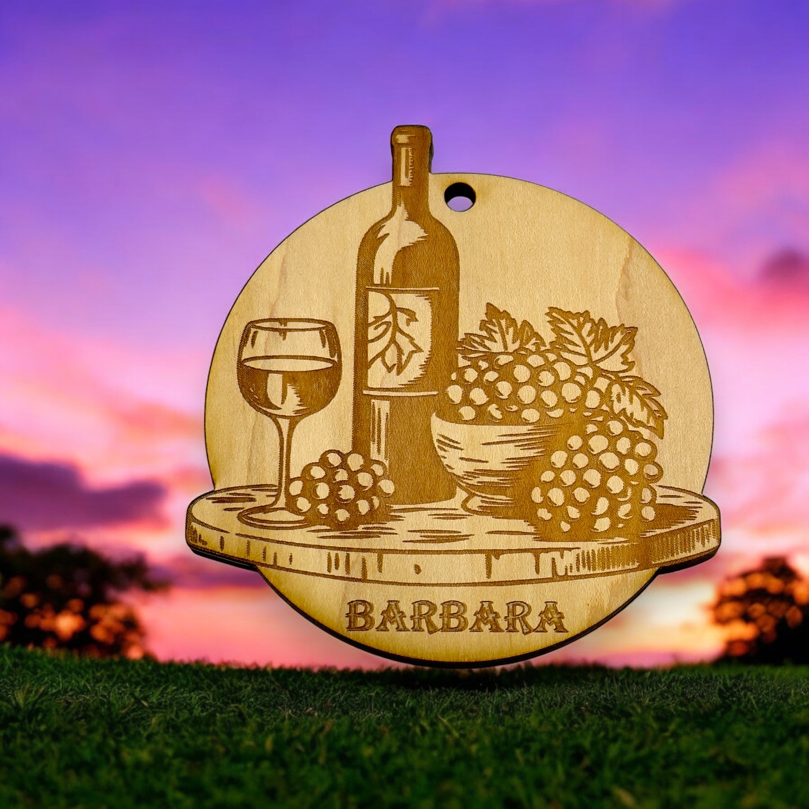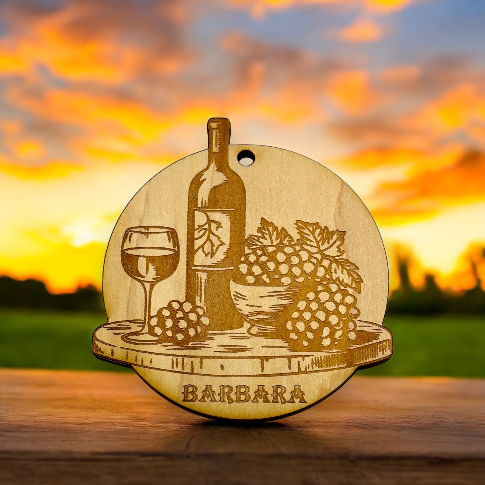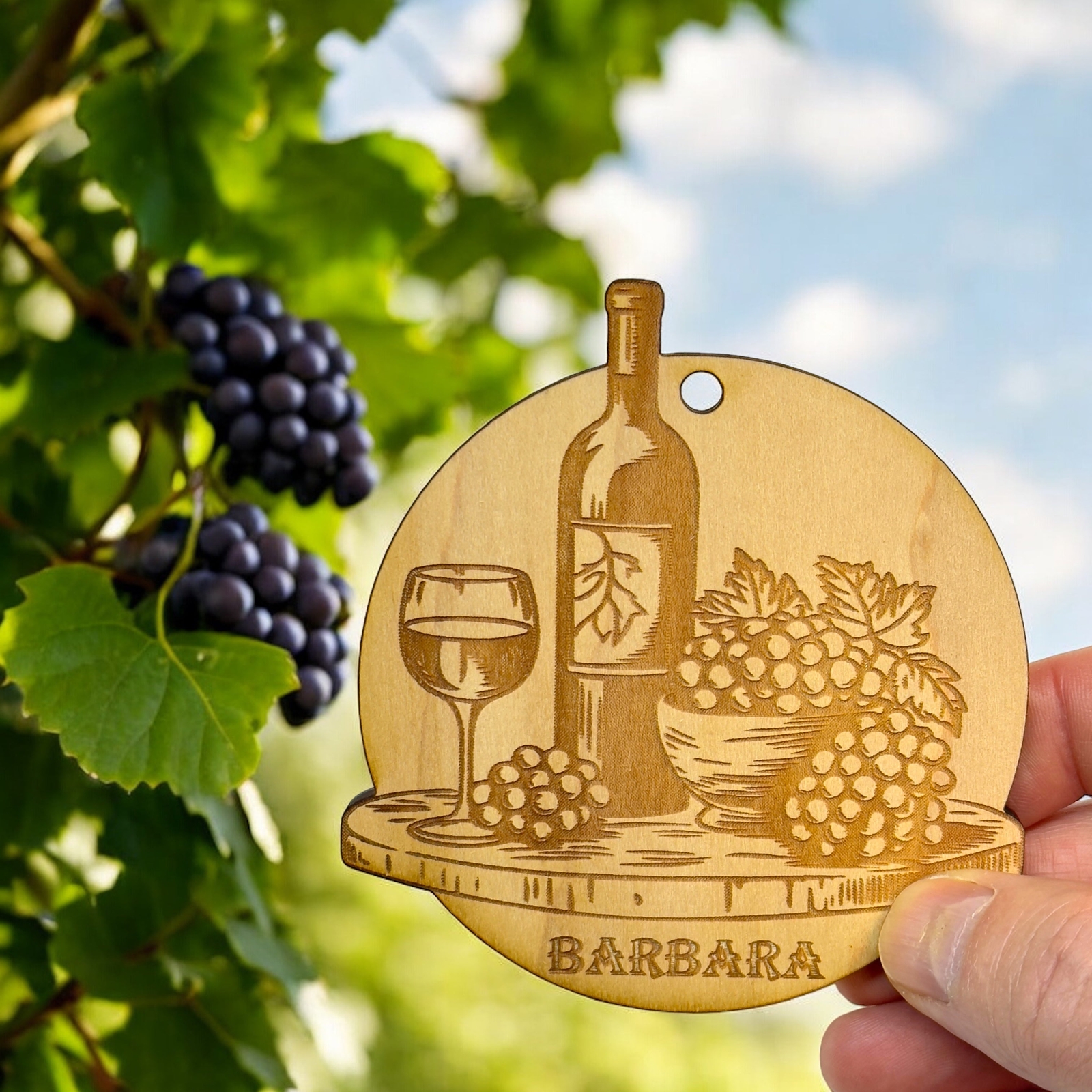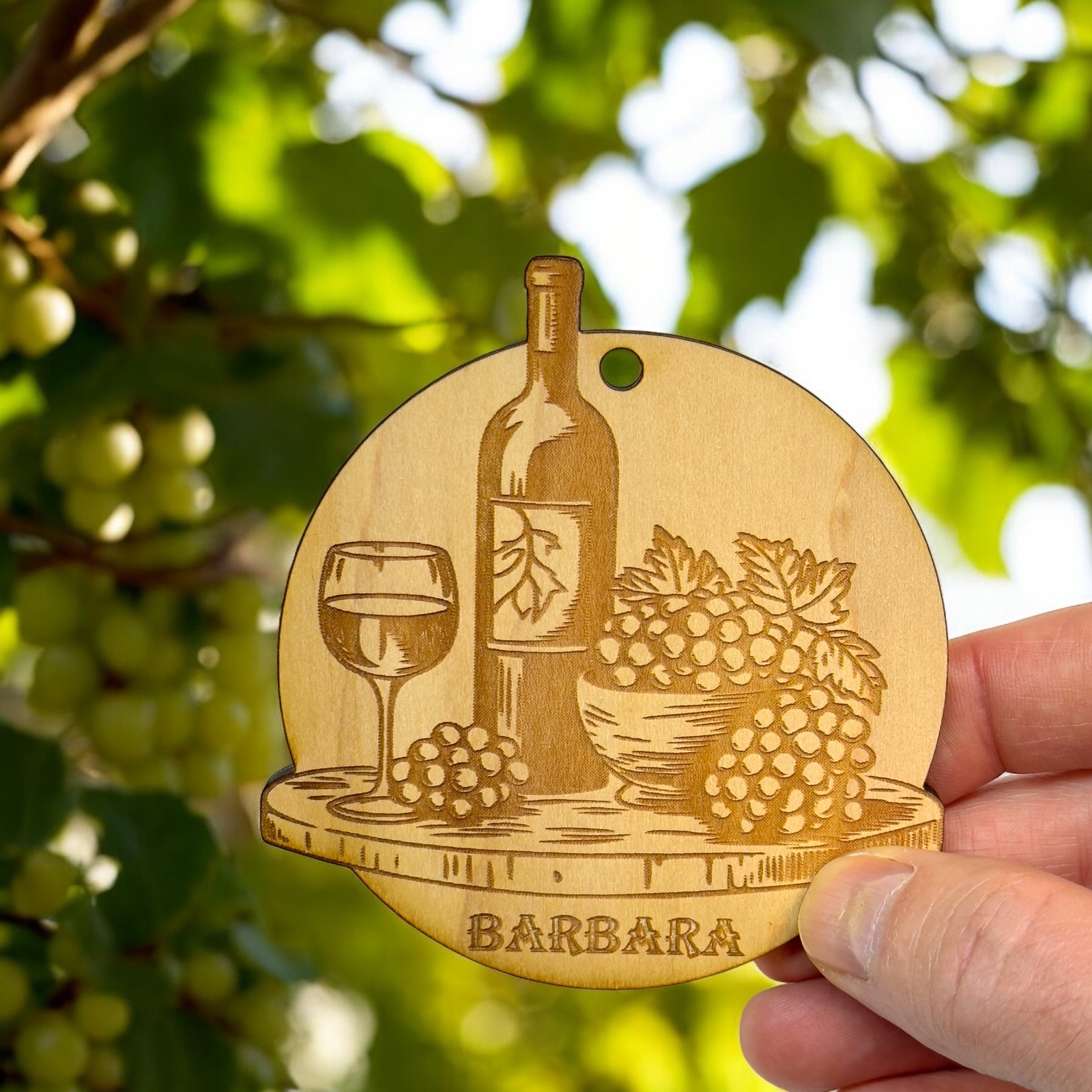 Ornament - PERSONALIZED Wine and Grapes Raw Wood