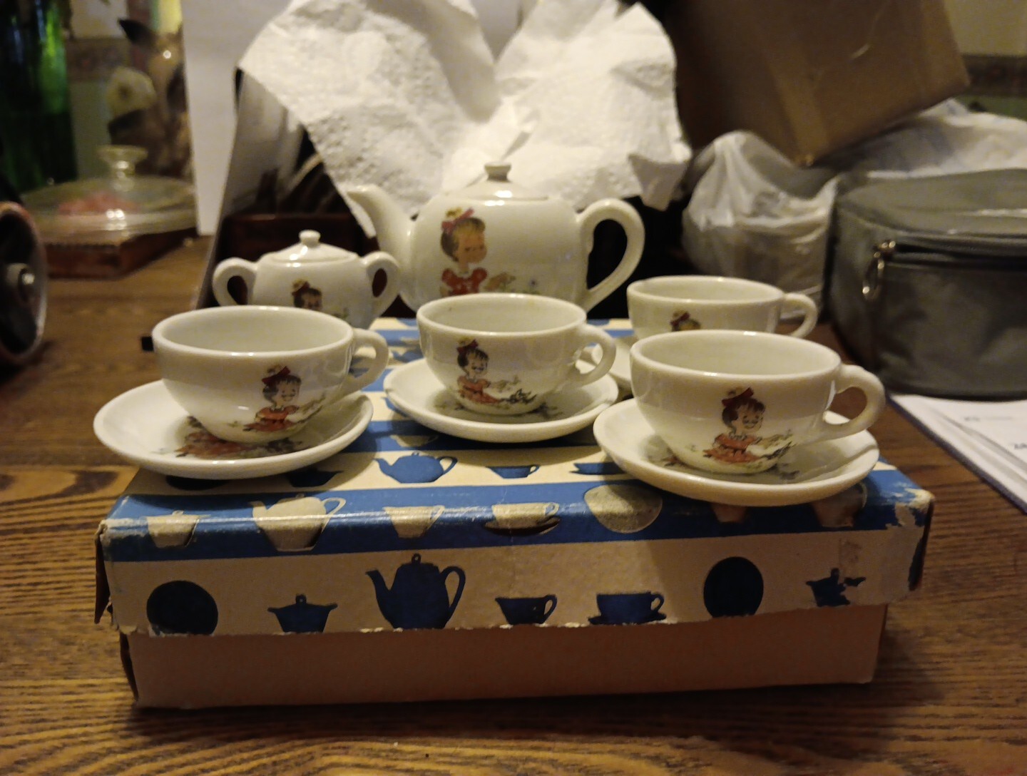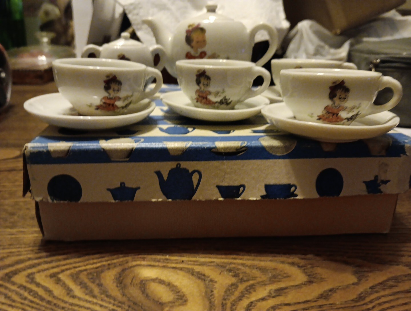 Vintage 1960s Toy China Tea Set 13 Pc Set Japan Girl /kitty
