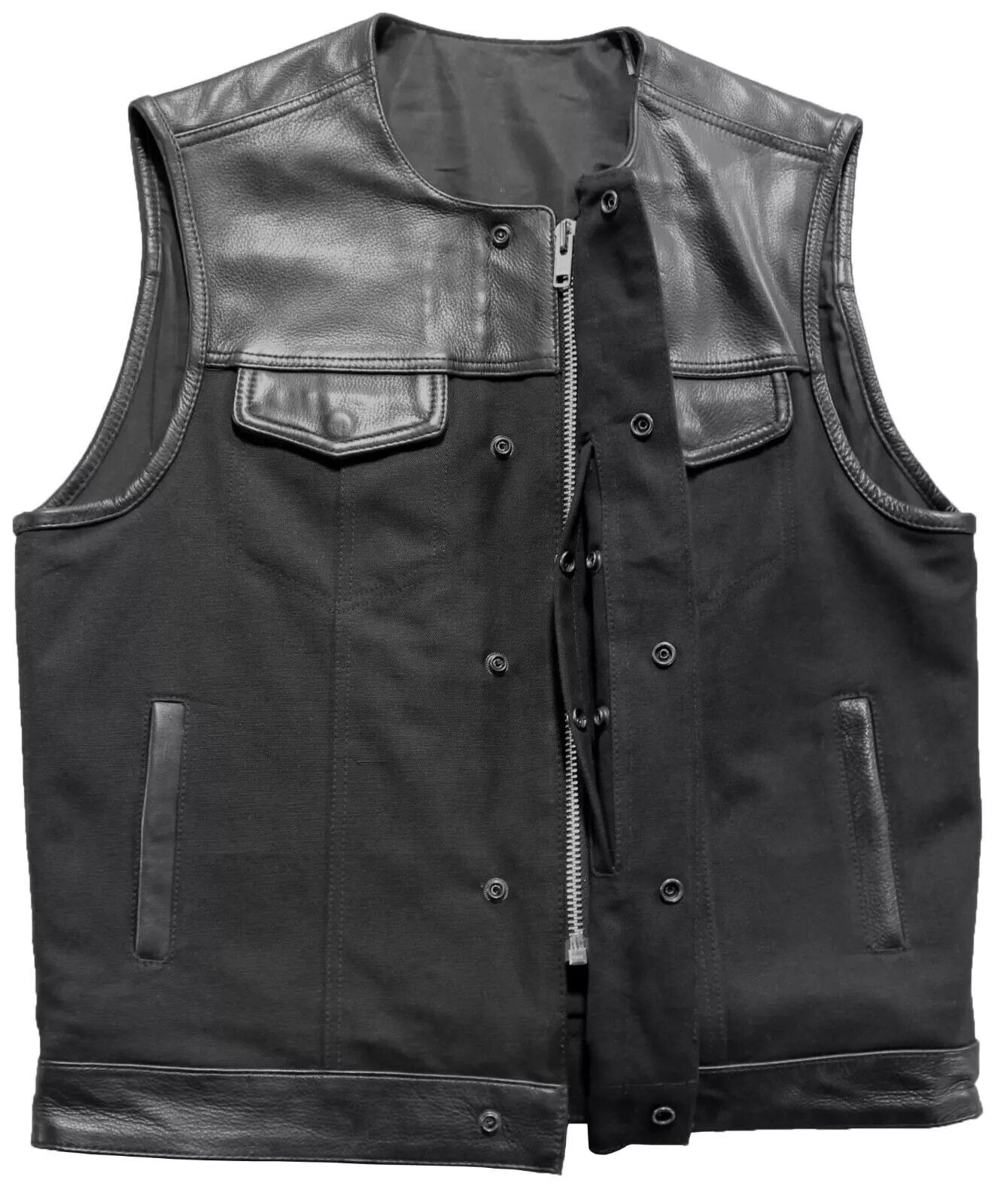 Men's Black Leather Waistcoat Diamond Stitch Motorbike Motorcycle Concealed Vest