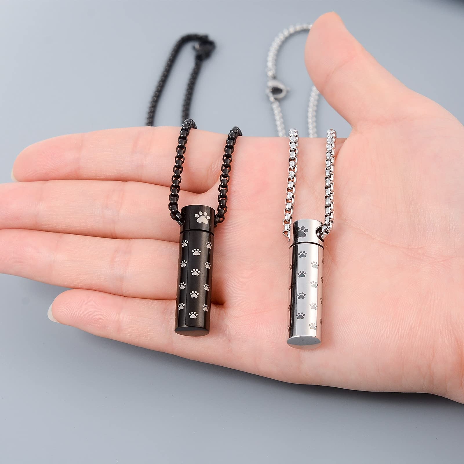 Dog Urn Necklaces For Ashes Paw Print Ashes Urn Pendant Necklace Cylinder Cre...