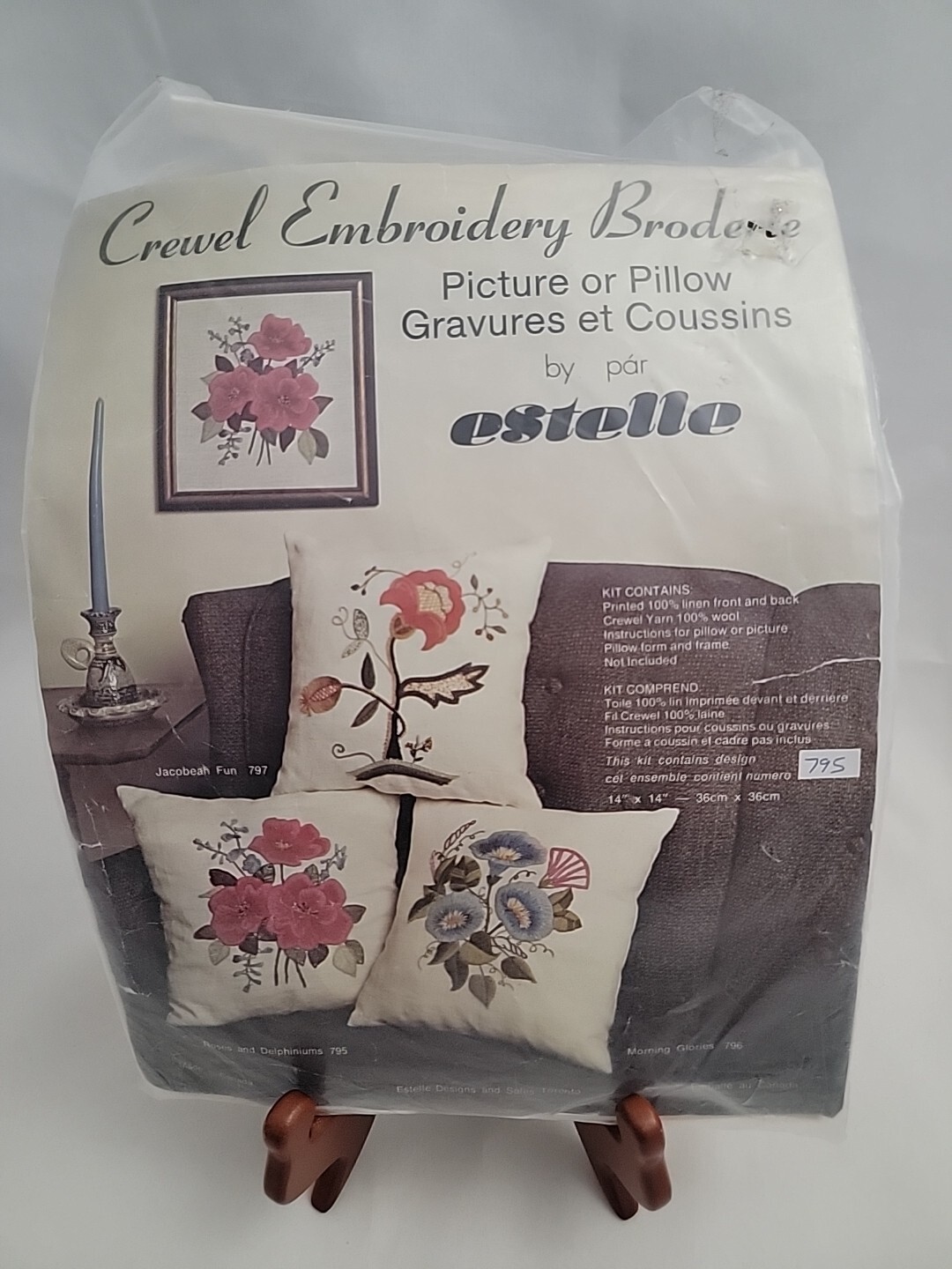 как выглядит Crewel Embroidery Broderie Roses Delphiniums Pic or Pillow Stitch Kit Flowers фото