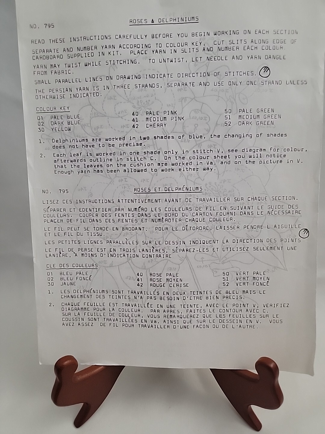 Crewel Embroidery Broderie Roses Delphiniums Pic or Pillow Stitch Kit Flowers