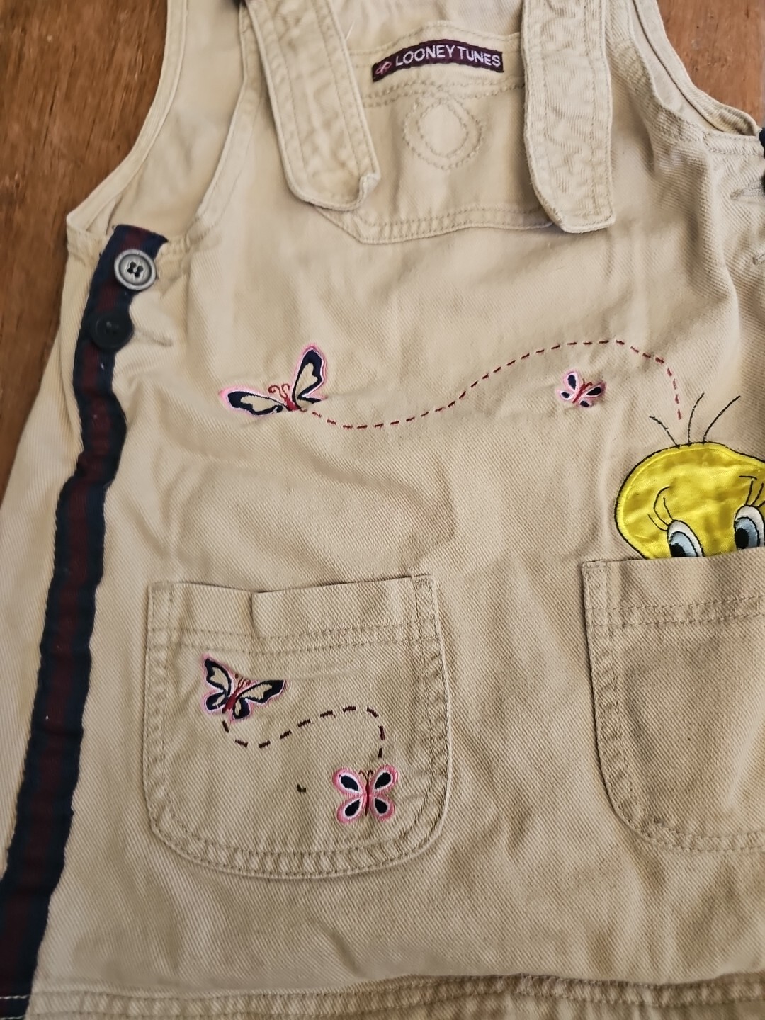 как выглядит Vintage 1999 Looney Tunes Size 5 Overall Dress Tweety Butterflies фото
