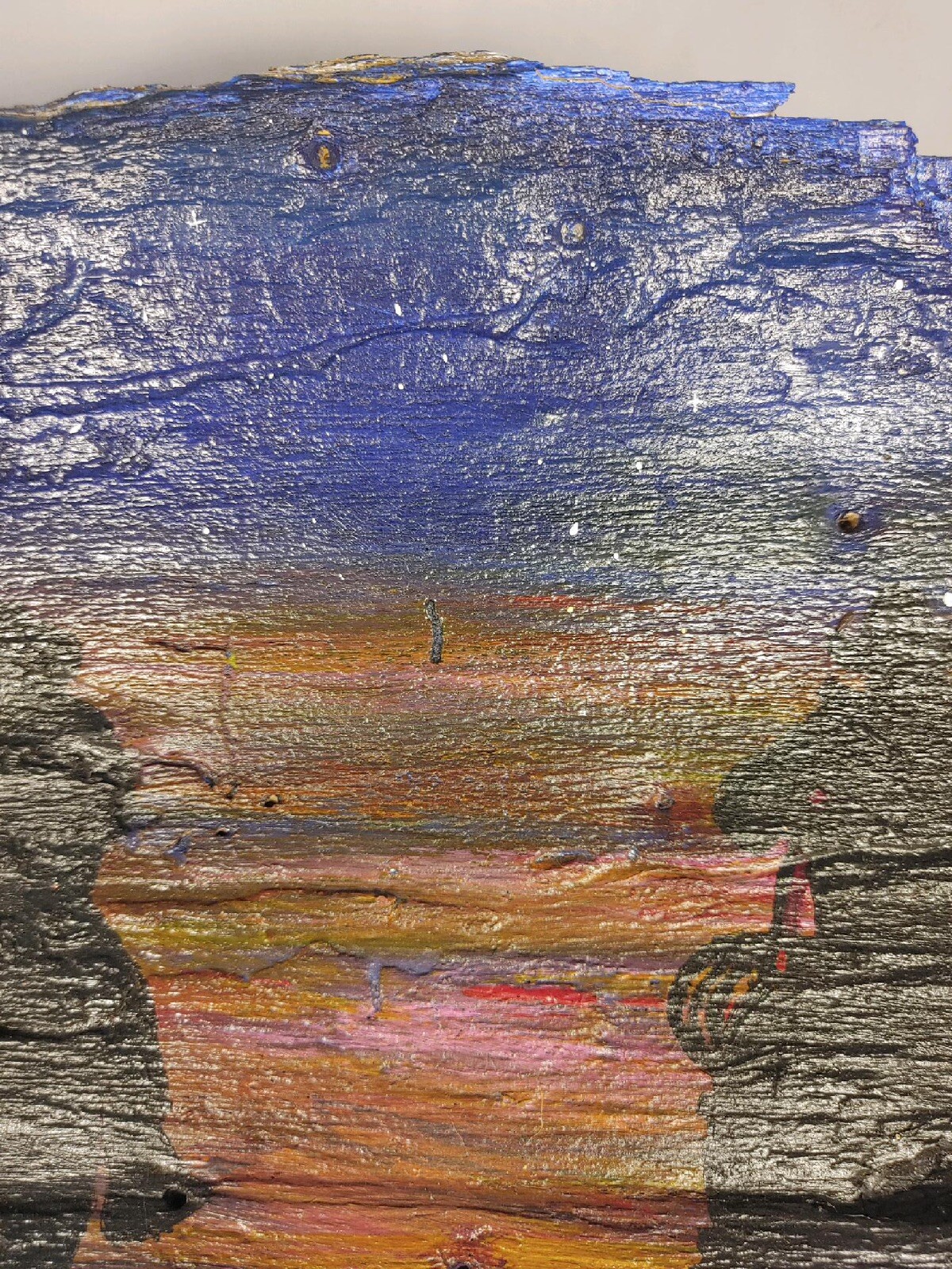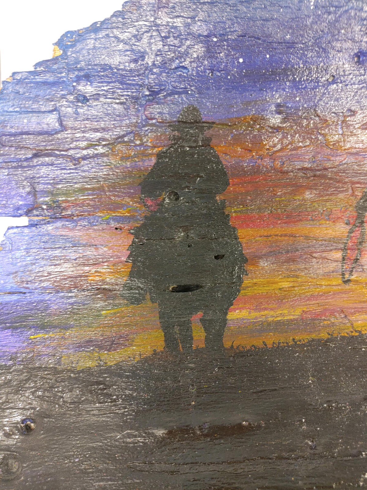 Hand Painted Tree Bark Western Nature Art Signed By Artist 3 Cowboys At Sunset