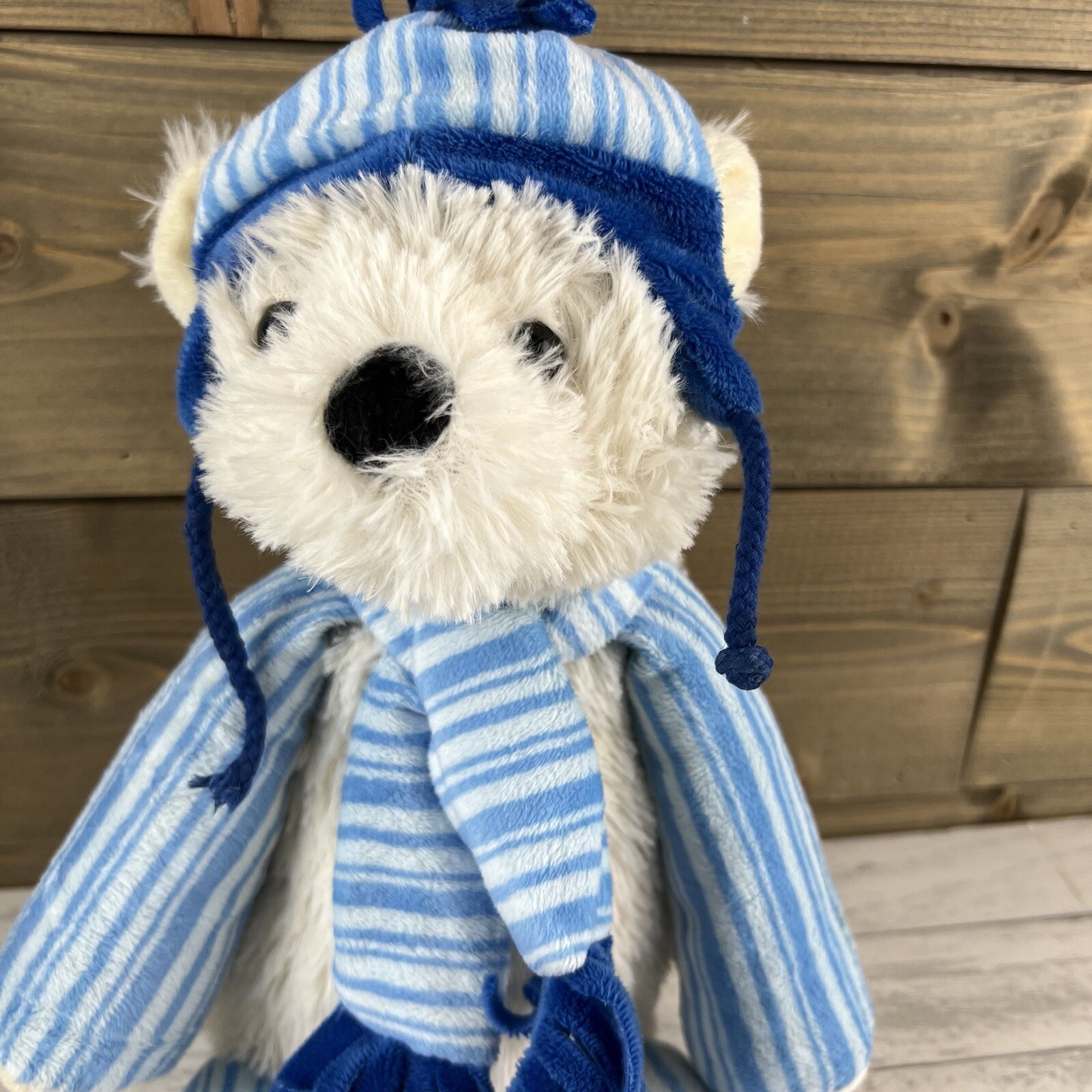 Scentsy Buddy Polar Bear Pooki Plush Winter Blue Striped Mochadoodle Scent Pak