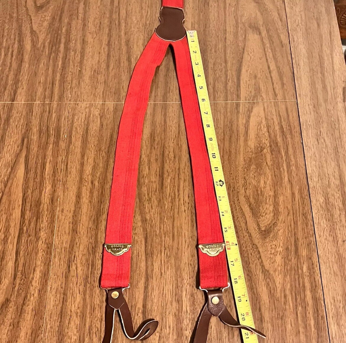 как выглядит Police Brace Red Antique Hunting Suspenders with Leather Tabs Brass 1950s фото