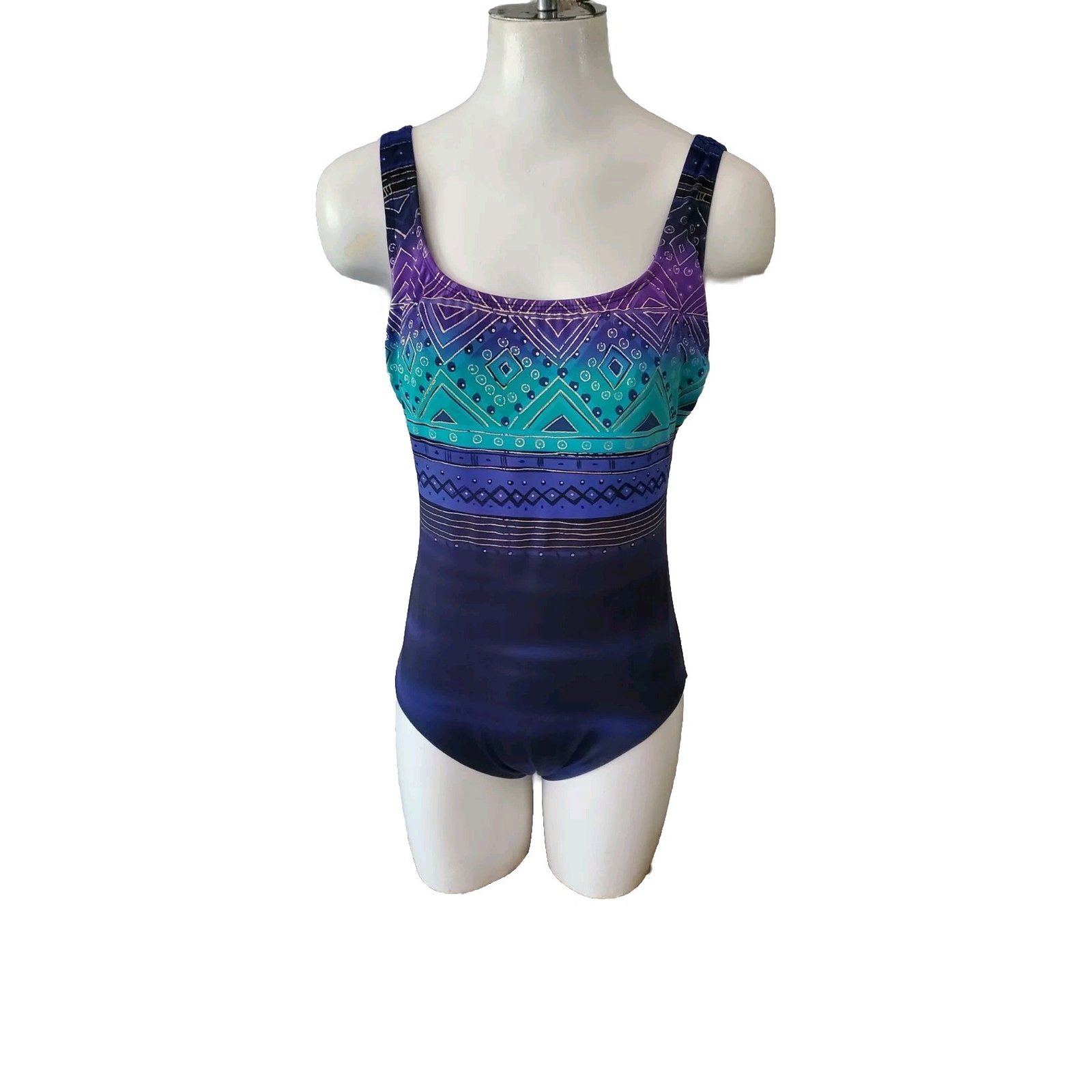 Robby Len One Piece Womens Swimsuit Purple Geometric Blue Size 10