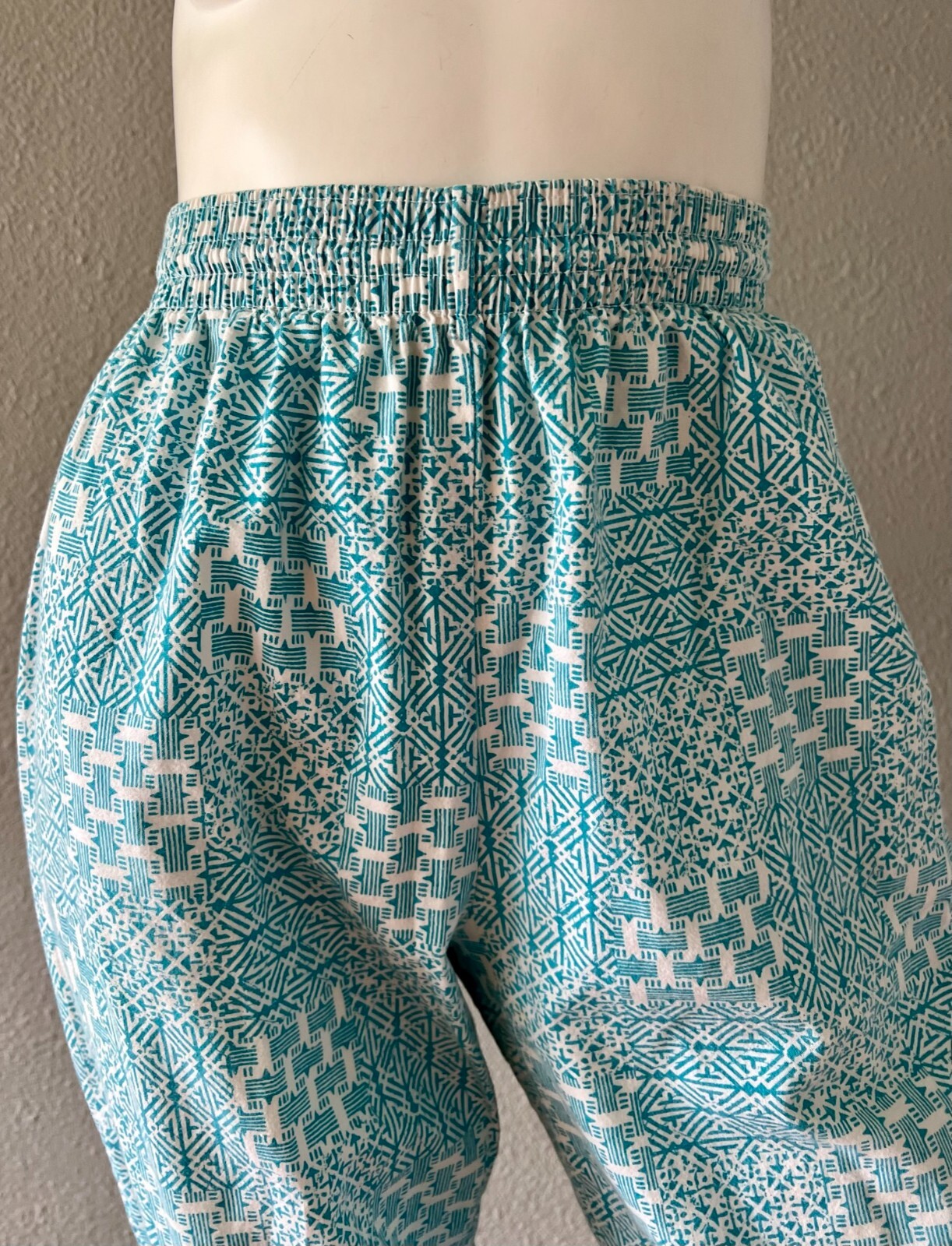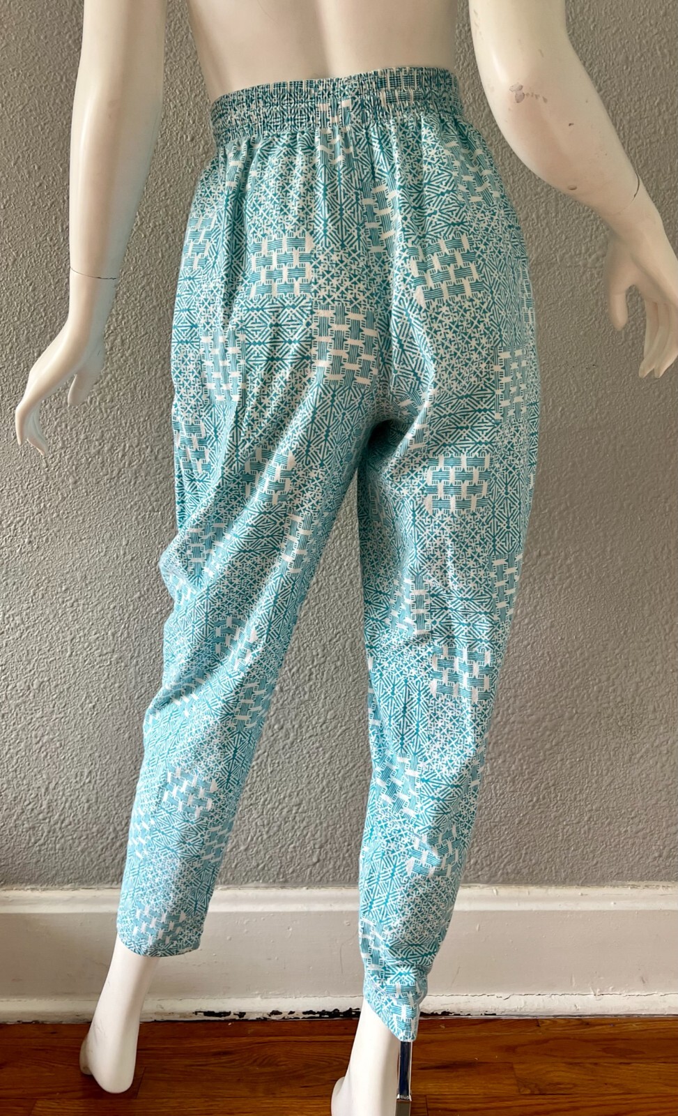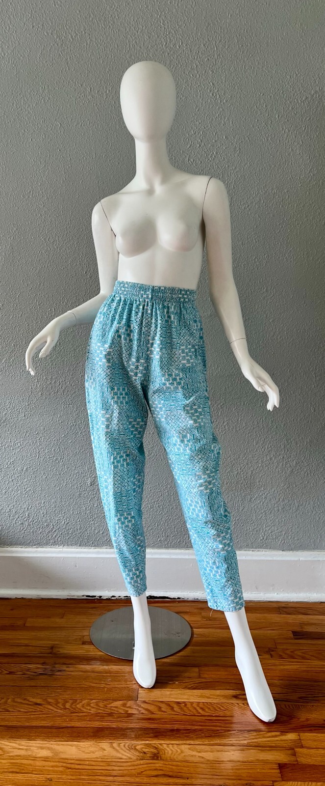 как выглядит Vintage 80s Blue Cotton High Waist Abstract Tapered Ankle Pants S/M фото