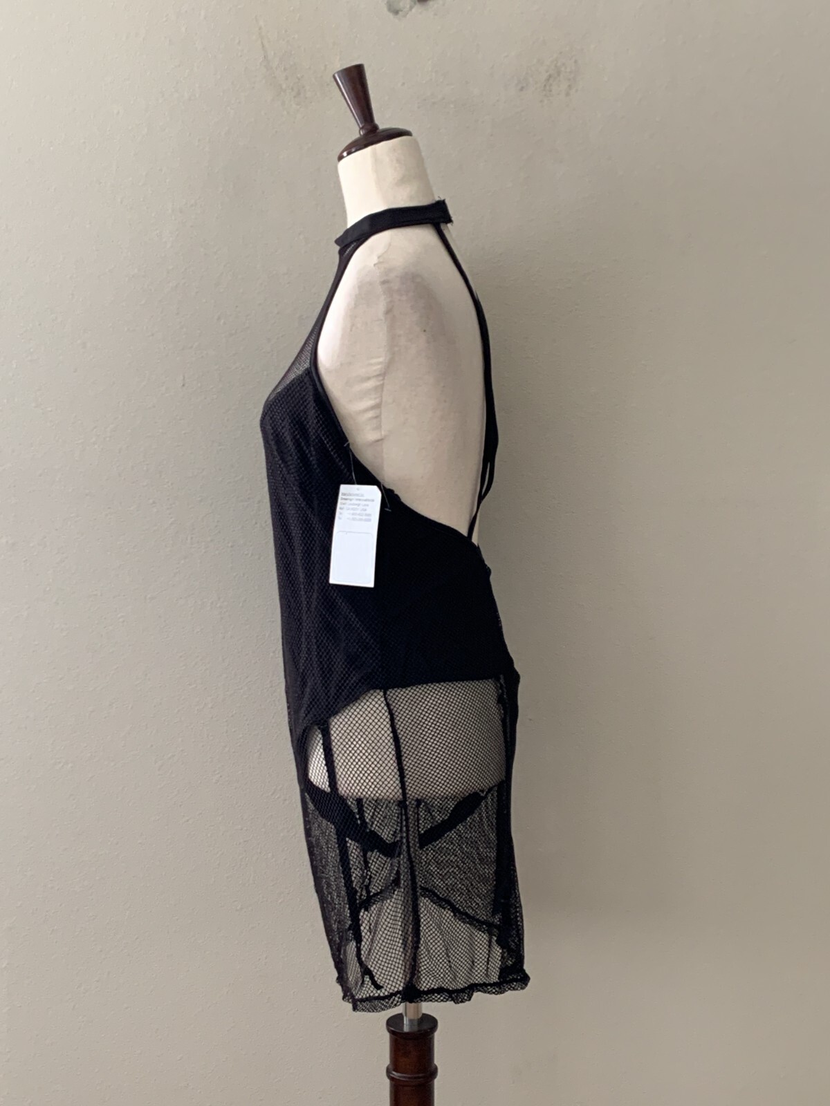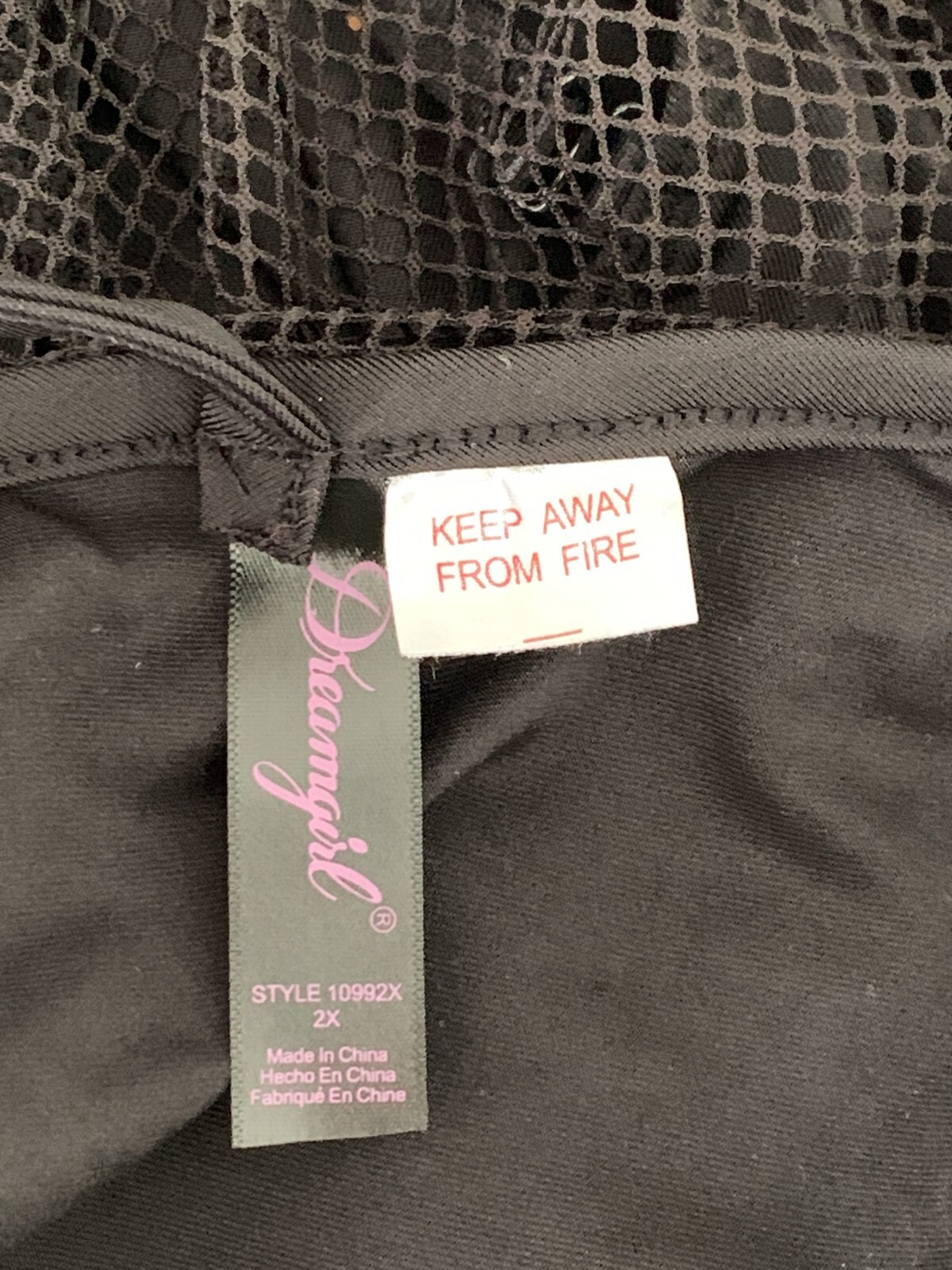 NWT Dreamgirl Women's Sz 2X Fishnet Garter Slip With Teddy Bodysuit Lining 10992