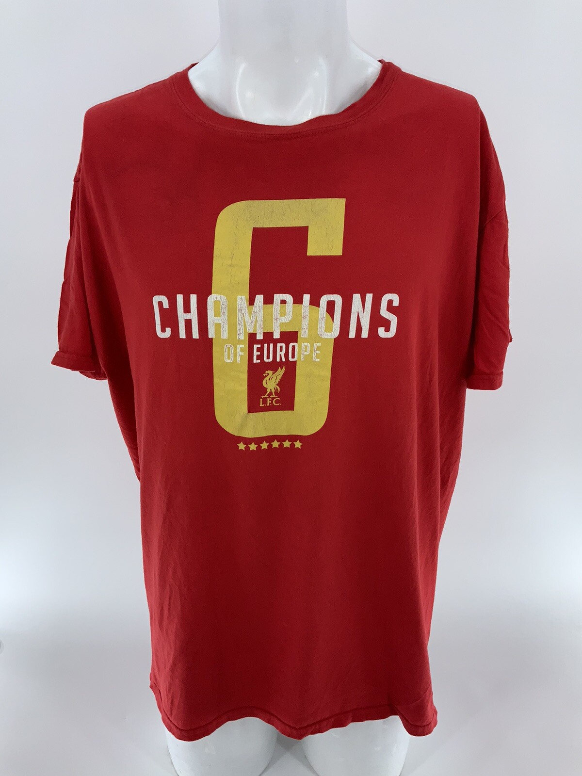 Liverpool FC 6 Time Champions Of Europe T-Shirt XXL Men Red Cotton YGI V4-13