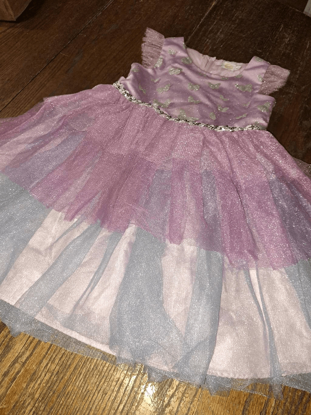 Size 7 Wonder Nation Short Sleeve Purple Silver Glitter Butterfly Princess Dress